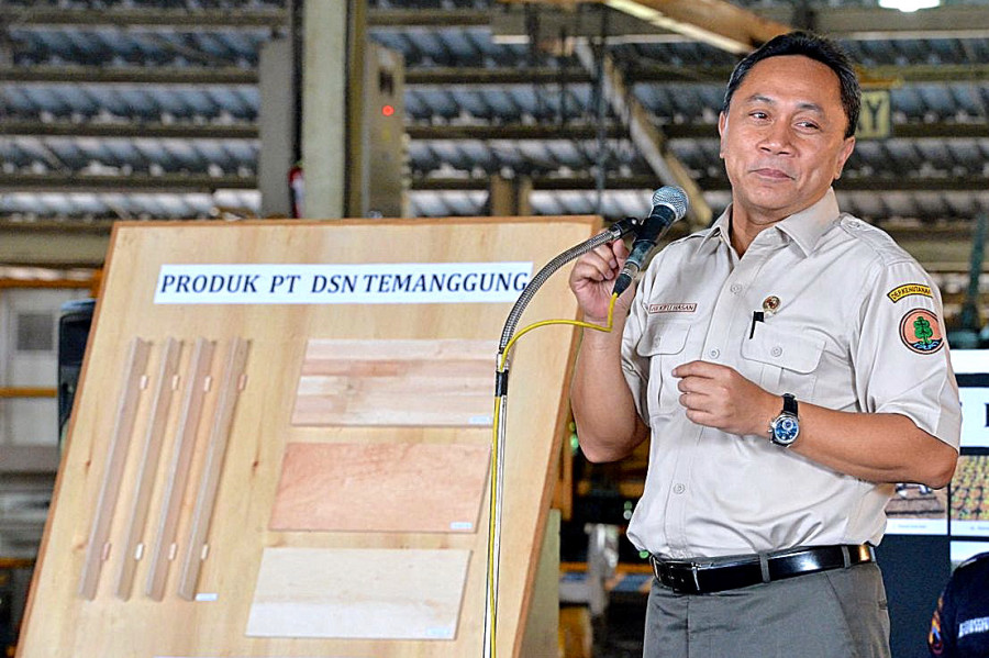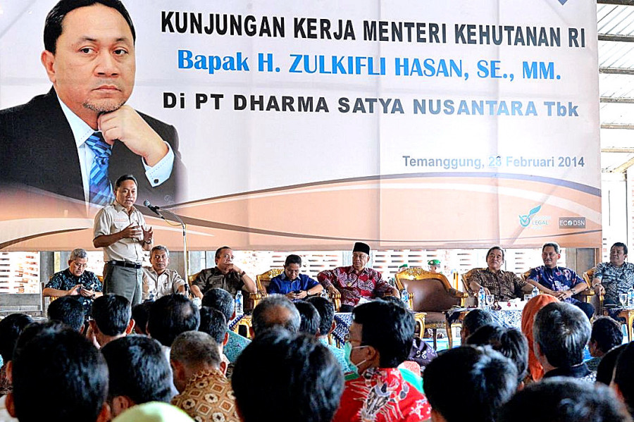 1 s/d 4 : Menteri Kehutanan Zulkifli Hasan meninjau pabrik industri sengon PT. Dharma Satya Nusantara (PT. DSN) di Temanggung. Direktur Utama PT. DSN Ricky Budiarto menjelaskan produksi kayu olahan per tahun di Temanggung sekitar 135 juta meter kubik dengan tujuan ekspor ke Jepang sebanyak 65 persen dan sisanya ke Singapura, China, Korea dan Amerika Serikat. PT. DSN Temanggung memiliki jumlah tenaga kerja sebanyak 1.933 orang.