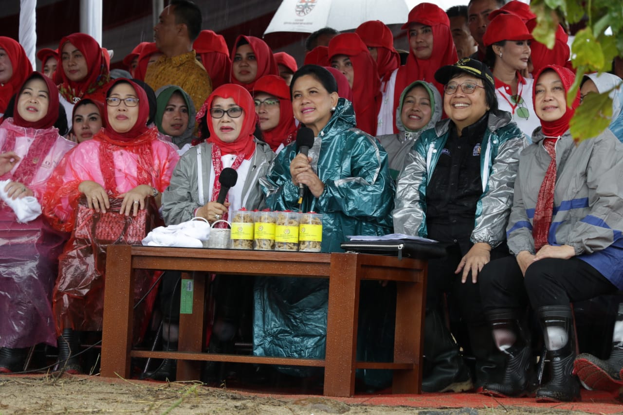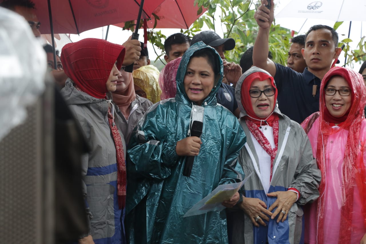 "Hujan ini tidak mengurangi semangat dari kita semua para Ibu-ibu, ada Ibu Menteri, Ibu OASE, Ibu-Ibu dari Indonesia Power, Ibu Gubernur dan Ibu Bupati semua yang hadir disini. Kita menanam ada 10 titik mangrove," kata Ibu Iriana dalam sambutannya di lokasi penanaman Pantai PLTU Labuan, Senin (11/03/2019).