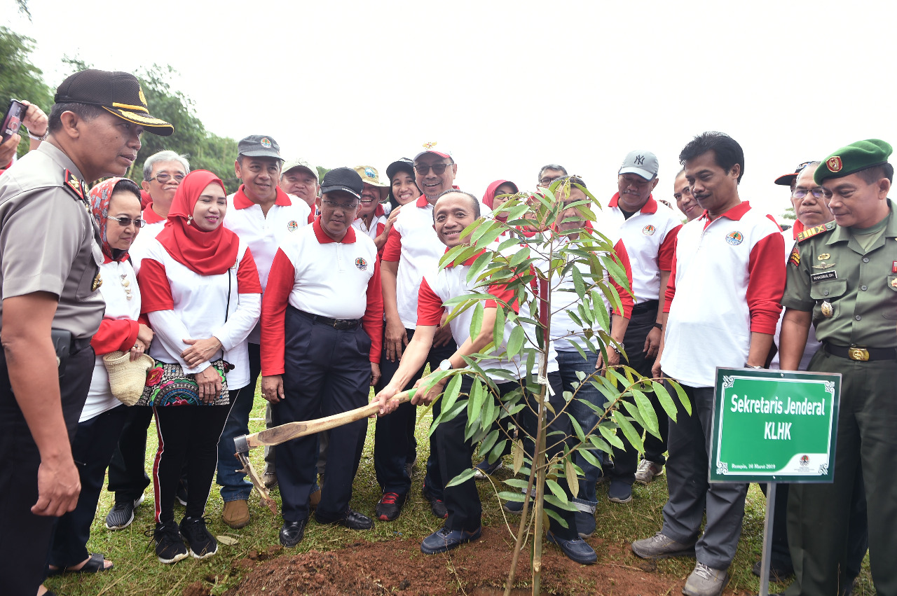 Jakarta, Kementerian Lingkungan Hidup dan Kehutanan (KLHK), Sabtu, 16 Maret 2019. Penanaman pohon di Kawasan Hutan Dengan Tujuan Khusus (KHDTK) Rumpin Bogor menjadi awal upaya sistimatis KLHK untuk merehabilitasi lahan dengan pendekatan tapak. Kegiatan penanaman ini juga merupakan rangkaian Peringatan Hari Bhakti Rimbawan ke-36, yang mengangkat tema