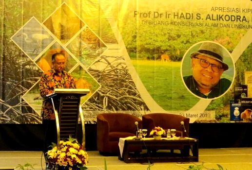 Jakarta, 24 Maret 2019. Mewakili Menteri LHK, Direktur Jenderal Konservasi Sumber Daya Alam dan Ekosistem (KSDAE), Wiratno, menghadiri Apresiasi Kiprah Prof. Dr. Ir. Hadi S. Alikodra, MS. di IPB International Convention Center, Bogor (23/03/2019). Acara ini merupakan bentuk penghormatan terhadap kiprah gemilang Sang Profesor dalam mendukung upaya konservasi sumber daya alam.