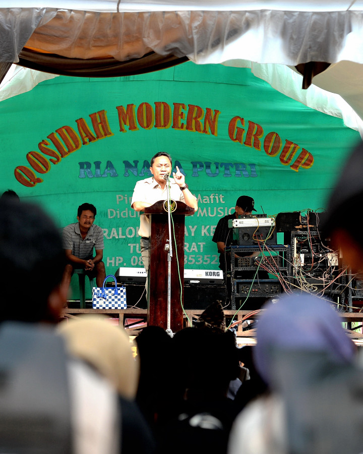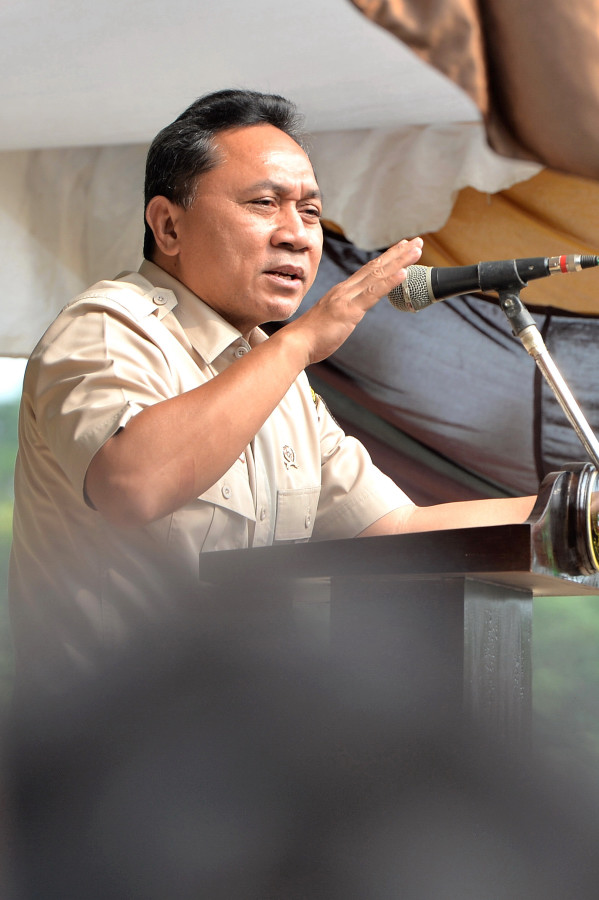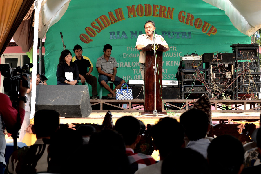 Foto 4,5,6 : Menhut memberikan sambutan di depan warga yang tinggal di Desa Labuhan indah yang masuk ke dalam kawasan Register 45 Mesuji Lampung. Dalam sambutanya Menhut menekankan bahwa Kementerian Kehutanan telah menyetujui penyerahan 7000 Ha lahan di Register 45 yang di klaim masyarakat adat sebagai tanah ulayat mereka, namun Kementerian Kehutanan masih menunggu data dari Pemkab Mesuji terkait nama-nama masyarakat adat yang berhak menerima tanah ulayat tersebut.