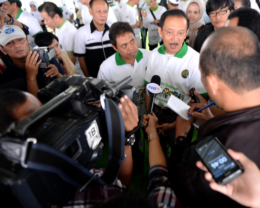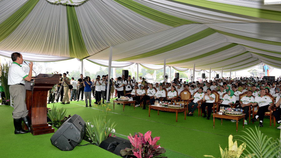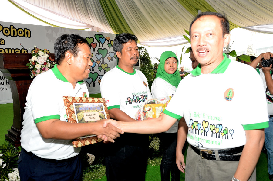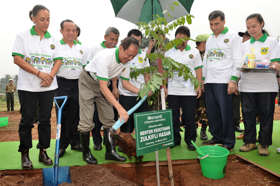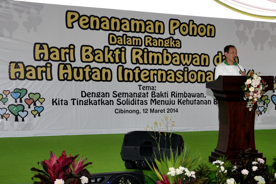 Pushumas Kemenhut, Cibinong : Kementerian Kehutanan mengadakan acara gerakan penanaman pohon dalam rangka memperingati Hari Bakti Rimbawan dan Hari Hutan Internasional Tahun 2014 , Rabu (12/3) di Sepadan Sungai Cikupa, Cibinong Bogor . Acara penanaman dihadiri oleh Sekjen Kemenhut Hadi Daryanto, Walikota Depok H. Nur Mahmudi Isma