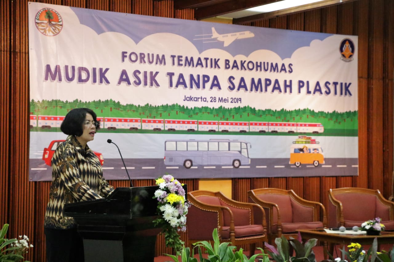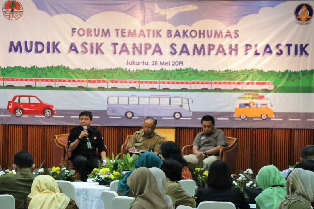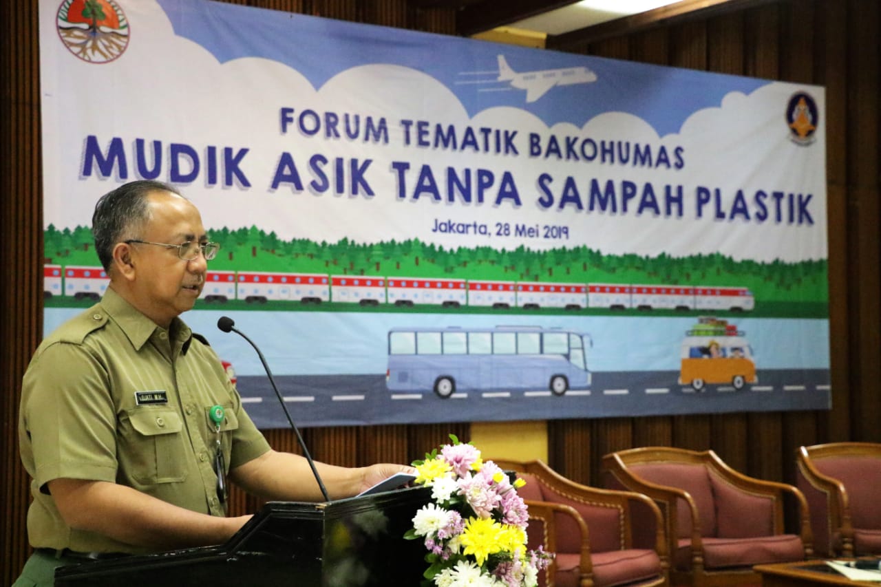 Jakarta, Kementerian Lingkungan Hidup dan Kehutanan (KLHK), Selasa, 28 Mei 2019. Momen Lebaran Idul Fitri 1440 H segera tiba, KLHK kembali menyerukan ajakan kepada masyarakat khususnya para pemudik untuk mengurangi penggunaan sampah plastik melalui tema kampanye "Mudik Asik Tanpa Sampah Plastik". Kali ini melalui Forum Badan Koordinasi Kehumasan Pemerintah (Bakohumas) yang merupakan jejaring kehumasan pemerintah. Melalui forum Bakohumas ini diharapkan pesan ajakan untuk meningkatkan kepedulian terhadap persoalan sampah plastik terutama saat momen mudik semakin masif ditangkap masyarakat dan dapat merubah perilaku pemudik.