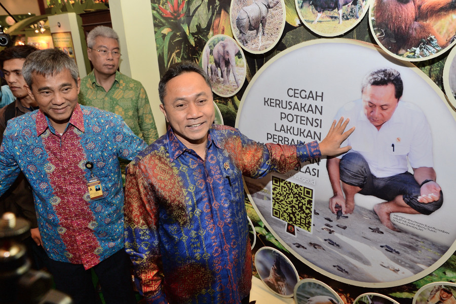 Pushumas Kemenhut, Jakarta : Menteri Kehutanan Zulkifli Hasan membuka Pameran