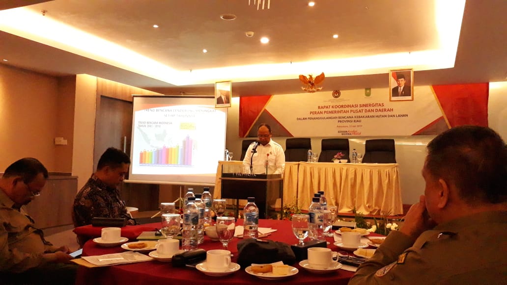 Salah satu agenda yang dilaksanakan yaitu Rakor Sinergitas Peran Pemerintah Pusat dan Daerah dalam Penanggulangan Bencana Provinsi Riau di Pekanbaru, hari ini (15/7/2019).