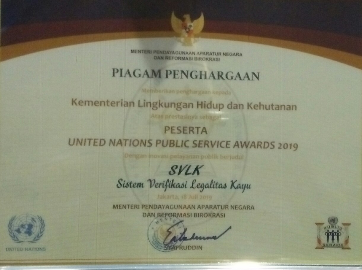 SVLK (Sistem Verifikasi Legalitas Kayu) meraih penghargaan sebagai inovasi yang ikut dilombakan ditingkat internasional yaitu pada kompetisi United Nation Public Service Award 2019. Sementara PROPER (Program Penilaian Peringkat Kinerja Perusahaan dalam Pengelolaan Lingkungan) dan SIPONGI (Sistem Informasi Deteksi Dini Pengendalian Kebakaran Hutan dan Lahan Berbasis Web) menjadi dua dari 99 Inovasi Pelayanan Publik terbaik tahun 2019 dengan menyisihkan 3.156 pendaftar dalam Kompetisi Inovasi Pelayanan Publik (KIPP) tahun ini.