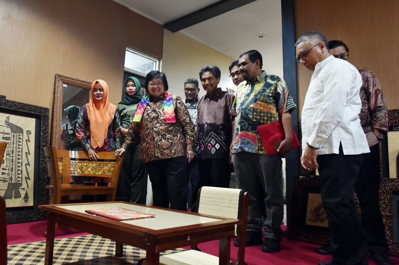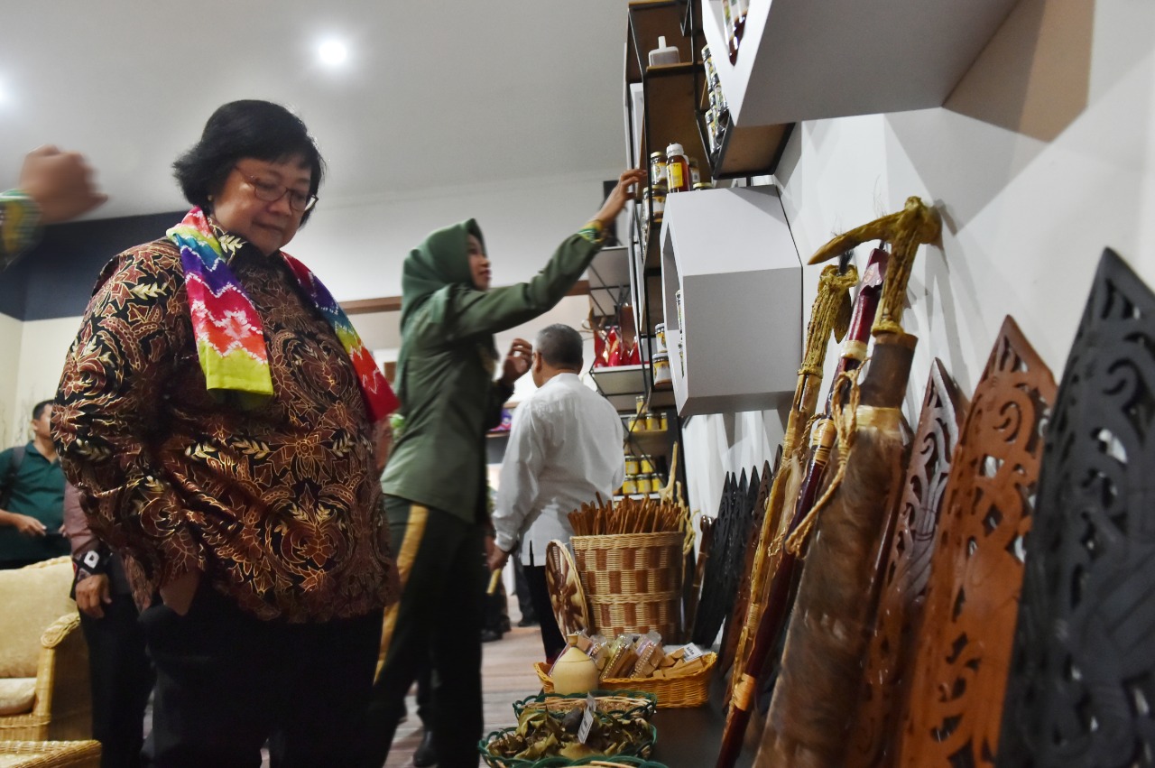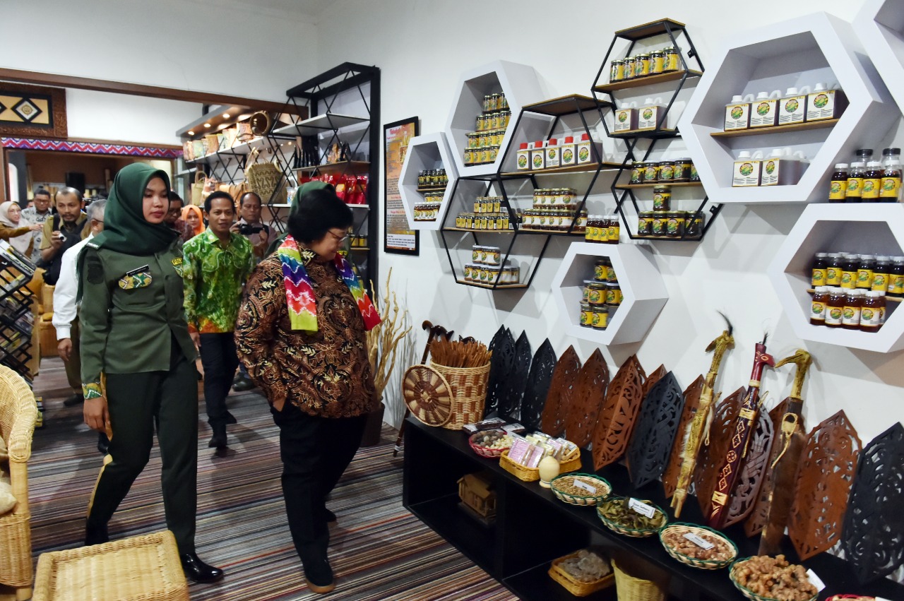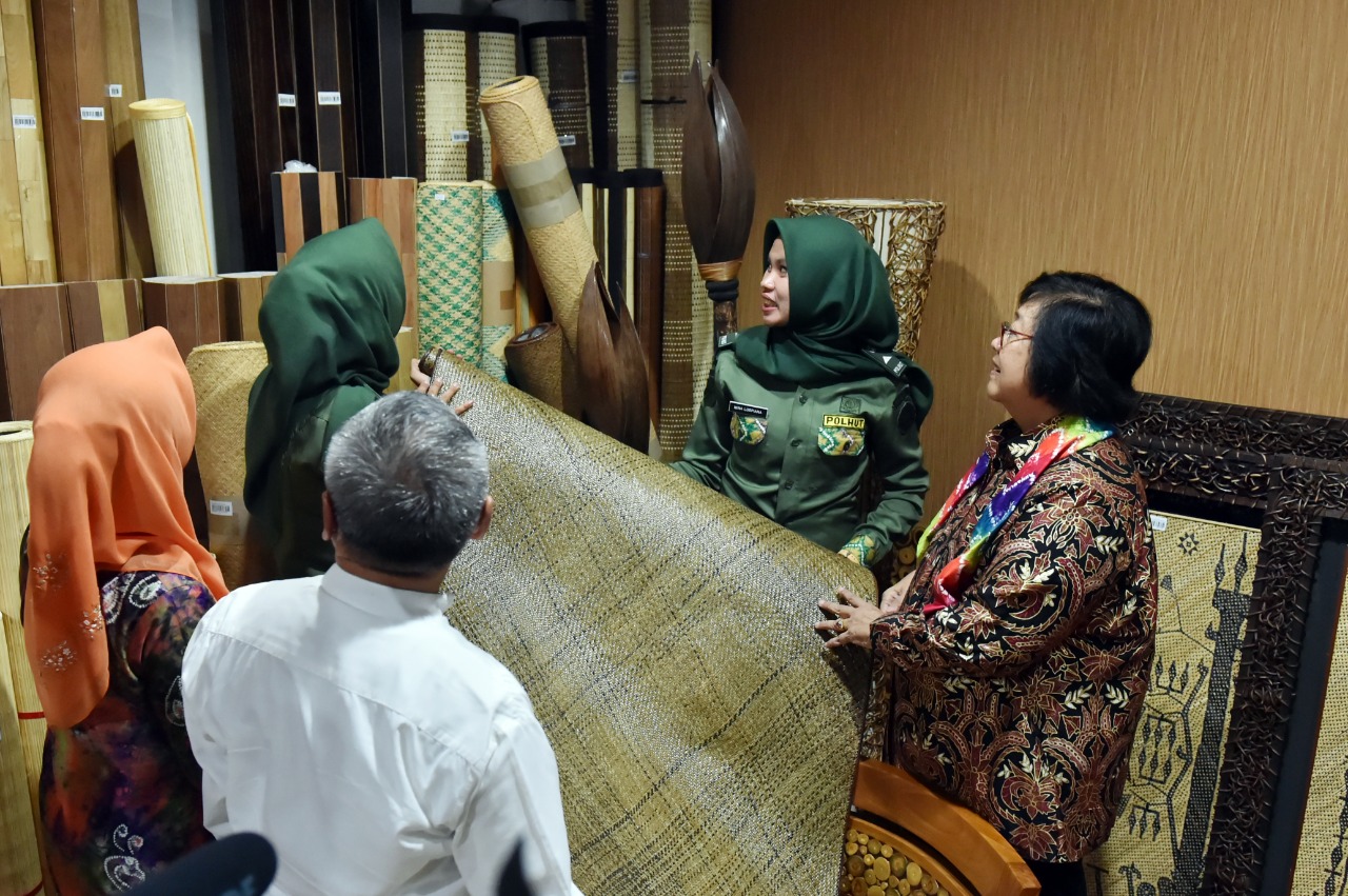 Banjarmasin, Kementerian Lingkungan Hidup dan Kehutanan (KLHK), Senin, 29 Juli 2019. Produk Hasil Hutan Bukan Kayu (HHBK) yang dihasilkan masyarakat dari beberapa Kesatuan Pengelolaan Hutan (KPH) di Provinsi Kalimantan Selatan semakin menumbuhkan optimisme atas terwujudnya hutan untuk kesejahteraan rakyat. Hal ini terungkap pada kunjungan kerja Menteri LHK, Siti Nurbaya ke Pusat Pemasaran Hasil Hutan, Dinas Kehutanan Provinsi Kalimantan Selatan, (29/7/2019).