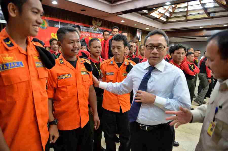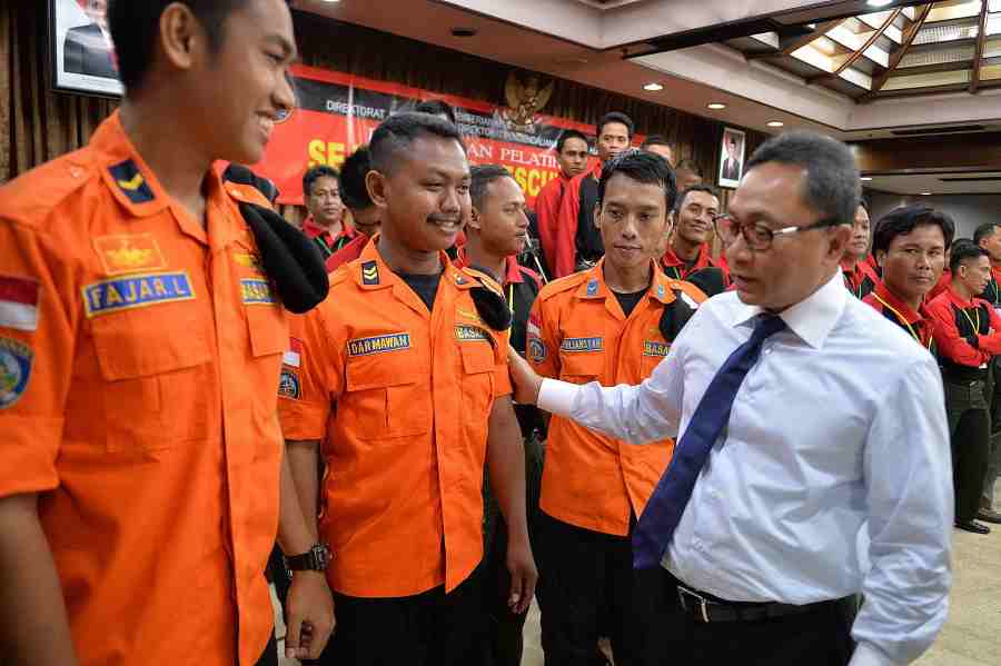 Foto 2-3 : Menteri Kehutanan Zulkifli Hasan membuka Pelatihan SAR bagi Anggota Manggala Agni Kementerian Kehutanan untuk menghadapi bencana banjir di Jakarta dan sekitarnya, Senin (5/5) di Jakarta.