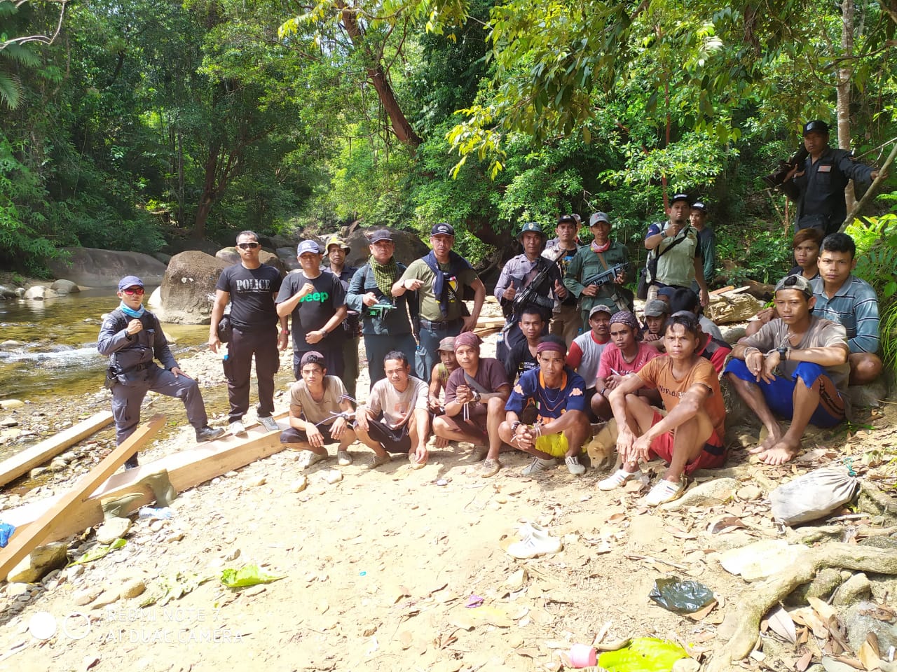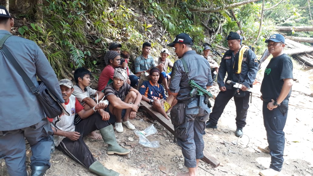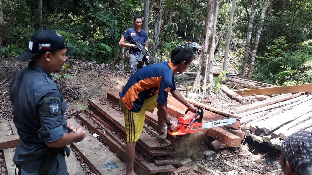 Pontianak, Kementerian Lingkungan Hidup dan Kehutanan (KLHK), Selasa, 6 Agustus 2019. Tujuh belas orang pelaku illegal logging di Kawasan Hutan Lindung Gunung Bentarang Desa Sungai Bening Kec. Sajingan Besar Kab. Sambas dekat perbatasan RI-Malaysia ditangkap dalam operasi gabungan Penyidik dan SPORC KLHK Wilayah Kalimantan, bersama dengan POM Kodam XII Tanjungpura, dan Korwas PPNS Polda Kalbar pada hari Jum
