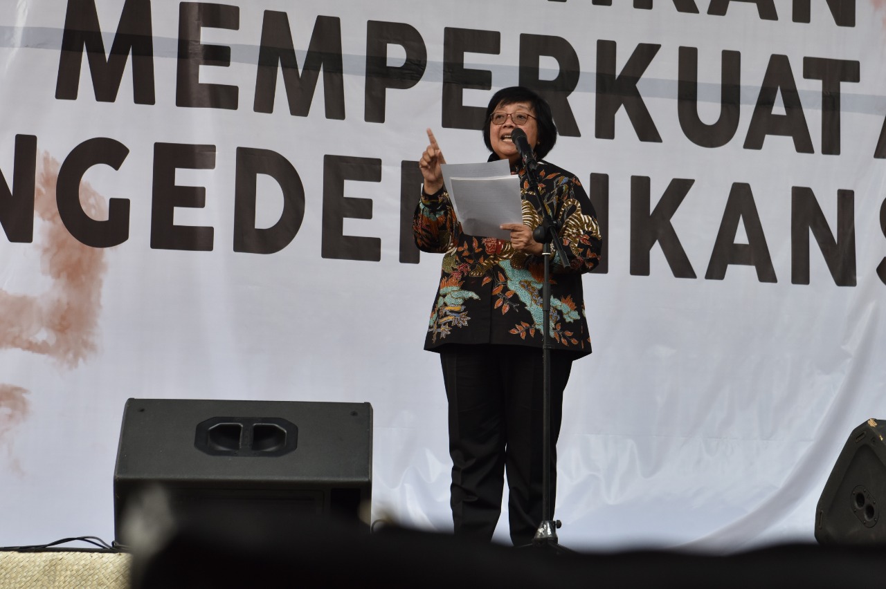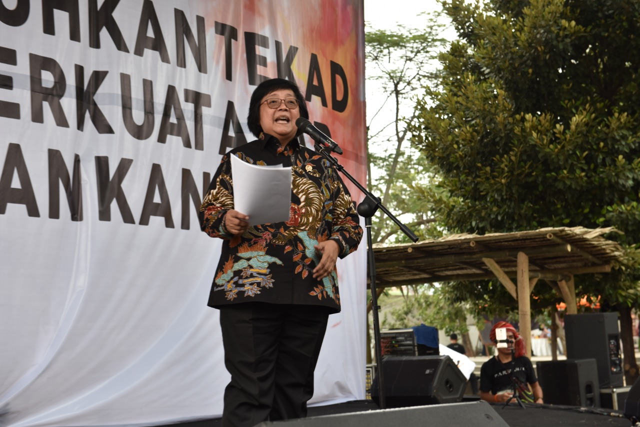 Menteri Lingkungan Hidup dan Kehutanan (LHK), Siti Nurbaya, mewakili Presiden RI Joko Widodo menghadiri perayaan 20 tahun berdirinya Aliansi Masyarakat Adat Nusantara (AMAN) serta peringatan Hari Masyarakat Adat Internasional tahun 2019 di Taman Ismail Marzuki, Jakarta (9/8).