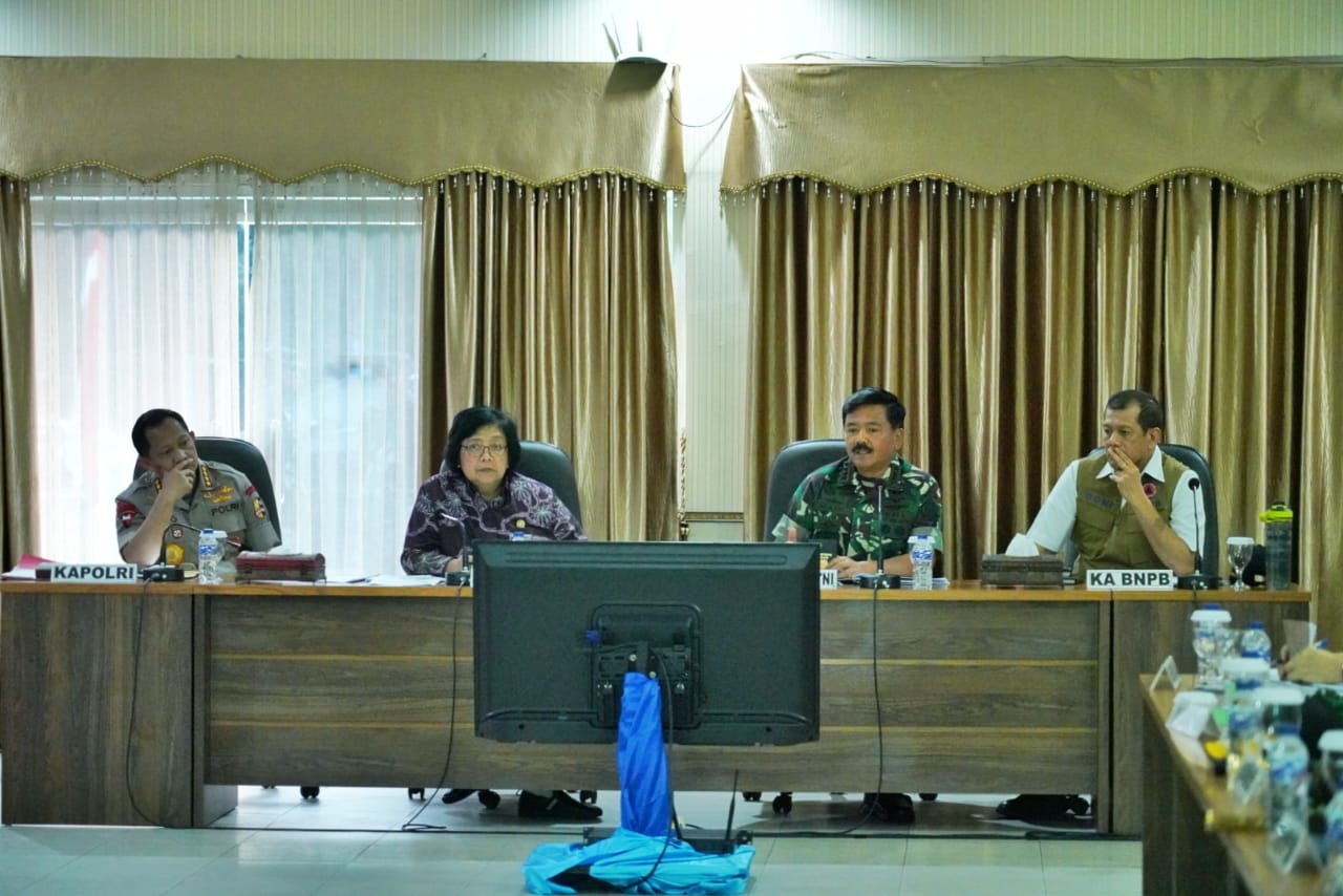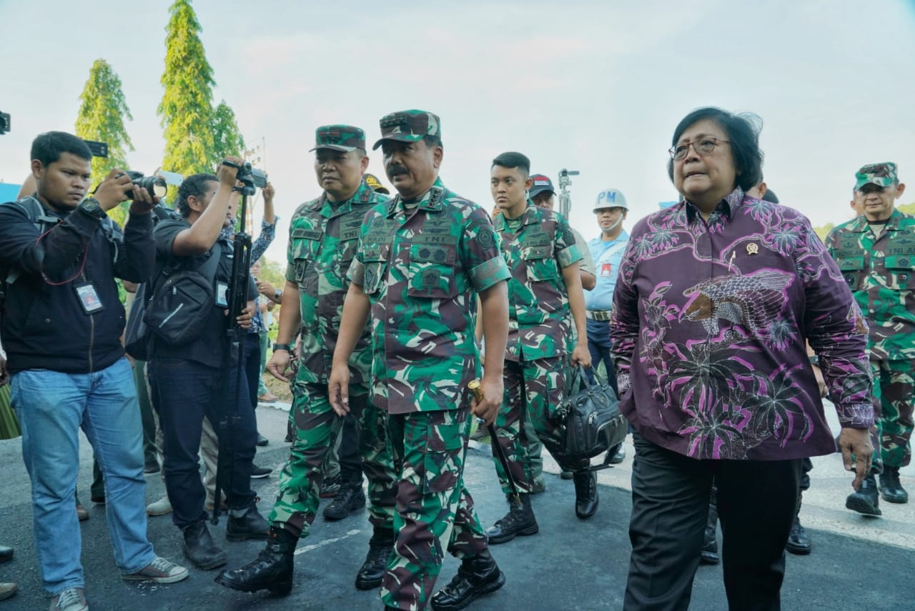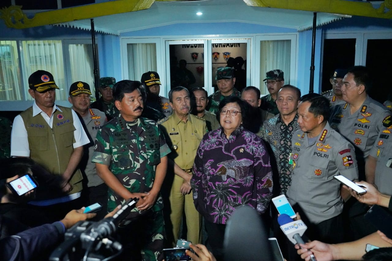 Pekanbaru, Kementerian Lingkungan Hidup dan Kehutanan (KLHK), Senin, 12 Agustus 2019. Menteri LHK, Siti Nurbaya bertolak ke Riau bersama dengan Panglima TNI Marsekal Hadi Tjahjanto, Kepala Polri Jenderal Tito Karnavian dan Kepala BNPB, Letjen Doni Munardo untuk meninjau proses penanganan karhutla di Provinsi Riau, (12/7/2019).
