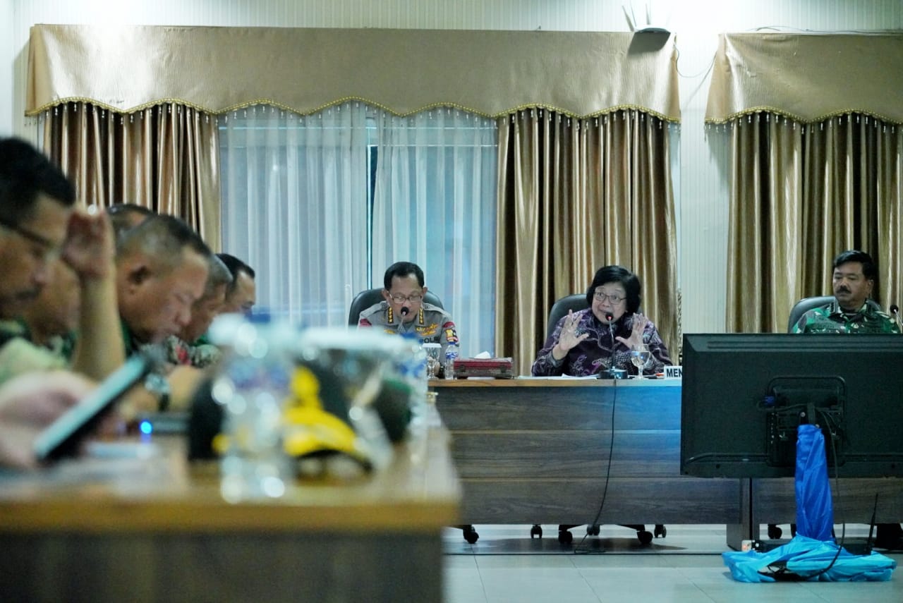 Tiba di Riau, Menteri Siti, Kapolri, Kepala BNPB menerima paparan dari Gubernur Riau dan Kepala BMKG Wilayah Riau terkait situasi titik api termasuk upaya pemadaman, serta kondisi cuaca di wilayah Provinsi Riau.