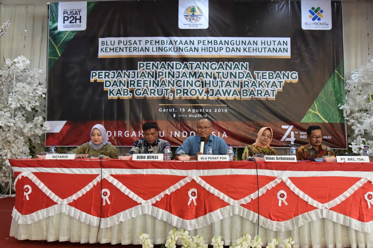 KLHK melalui Badan Layanan Umum Pusat Pembiayaan Pembangunan Hutan (BLU Pusat P2H) menyalurkan dana pinjaman sebesar Rp. 27.999.620.000 kepada 281 petani hutan yang tergabung dalam 12 Kelompok Tani Hutan Rakyat (KTHR) di Garut, Jawa Barat.