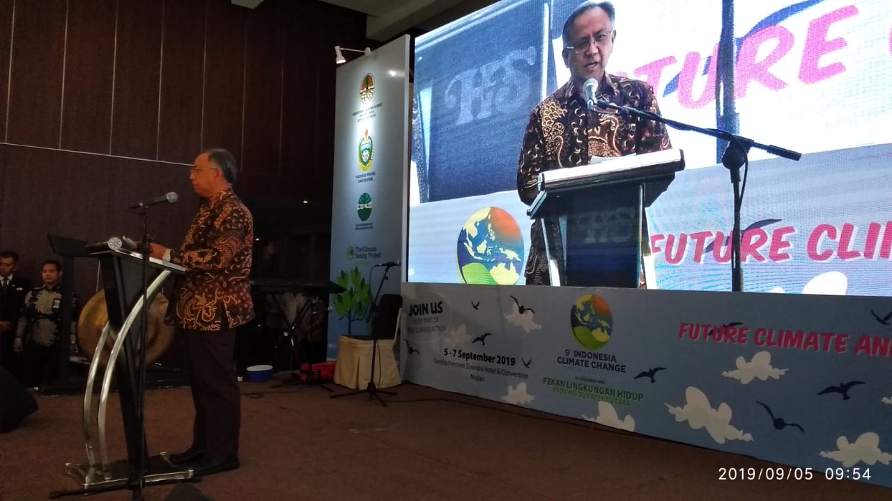 terhadap dampak perubahan iklim perlu dipersipakan dengan baik dan perlu diperkuat untuk dapat berkelanjutan," ujar Menteri LHK, Siti Nurbaya dalam sambutannya yang dibacakan oleh Kepala Badan Penelitian, Pengembangan dan Inovasi KLHK, Agus Justianto pada pembukaan 9th Indonesia Climate Change Forum and Expo (ICCFE) 2019 di Santika Premiere Dyandra Hotel & Convention, Medan, Sumatera Utara (5/9/2109).