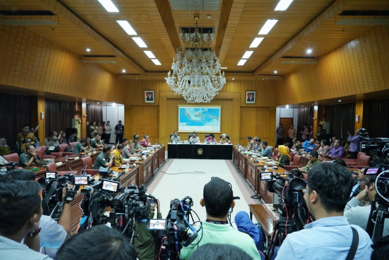 Jakarta, Kementerian Lingkungan Hidup dan Kehutanan (KLHK), Sabtu, 14 September 2019. Menteri Koordinator Bidang Politik Hukum dan Keamanan (Menko Polhukam) Wiranto menggelar rapat koordinasi (Rakor) dengan KLHK, Badan Meteorologi Klimatologi dan Geofisika (BMKG), Badan Nasional Penanggulangan Bencana (BNPB), TNI-POLRI, serta Pemerintah Daerah Rawan Karhutla, di Jakarta, (13/9/2019). Rakor tersebut bertujuan membahas perkembangan pengendalian kebakaran hutan dan lahan (Karhutla) di Sumatera dan Kalimantan.