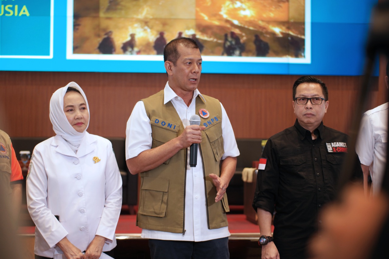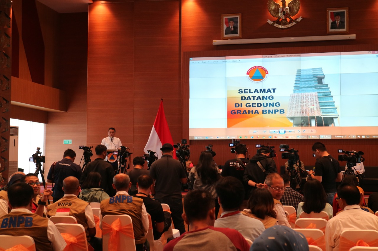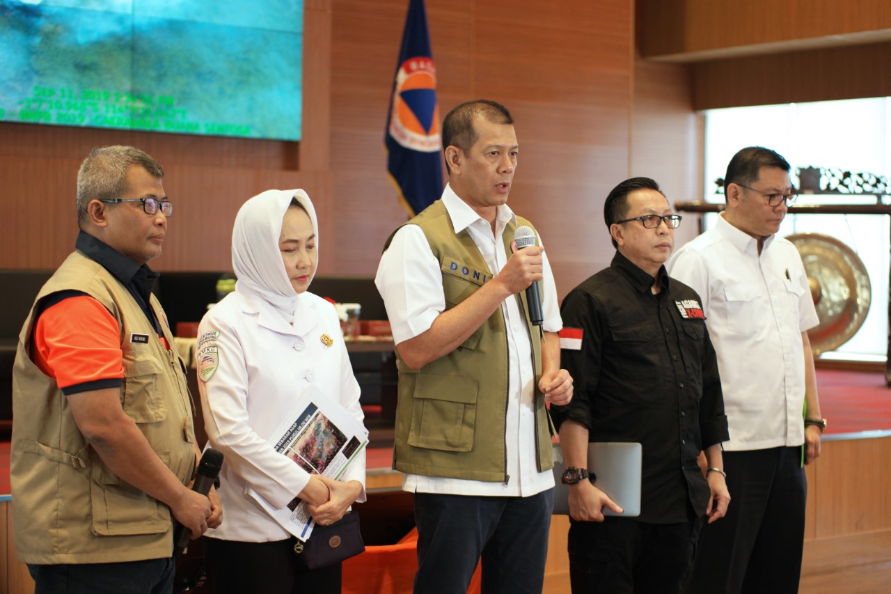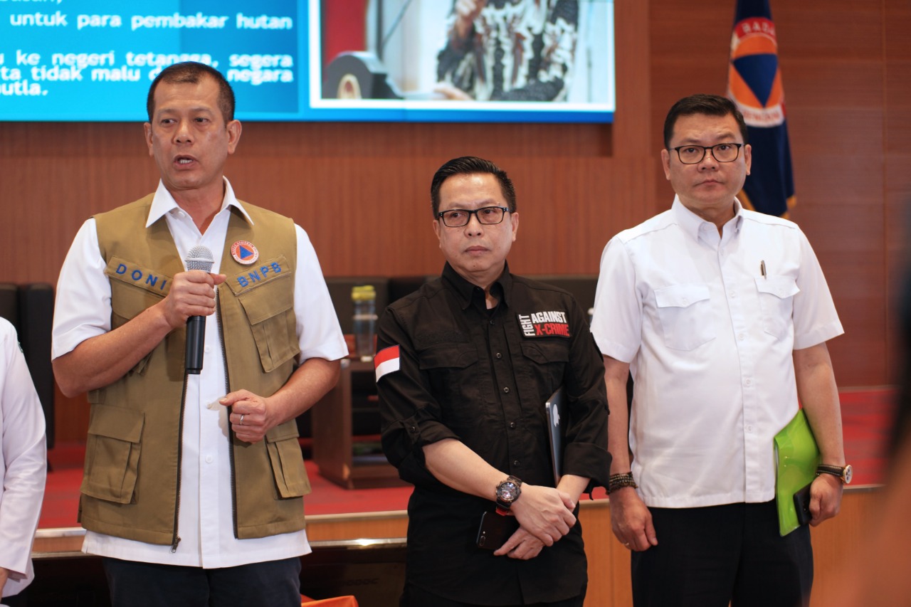 Sebagai tindak lanjut dari penanganan kebakaran hutan dan lahan (karhutla), hari ini Sabtu (14 September 2019), Kementerian Lingkungan Hidup dan Kehutanan (KLHK), Badan Nasional Penanggulangan Bencana (BNPB), Badan Meteorologi Klimatologi dan Geofisika (BMKG), serta Badan Restorasi Gambut (BRG), kembali bertemu dengan awak media di Ruang Serbaguna Sutopo Purwo Nugroho Kantor BNPB.