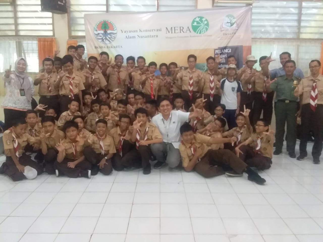 Jakarta, Kementerian Lingkungan Hidup dan Kehutanan (KLHK), Kamis, 24 Oktober 2019. Sebanyak kurang lebih 200 siswa terbaik dari kelas 7 s/d kelas 9 SMP Negeri 2 Jakarta Pusat, diajak peduli pelestarian ekosistem pesisir melalui kegiatan sambang sekolah. Kegiatan ini merupakan kerjasama KLHK c.q. BKSDA DKI Jakarta dengan Kelompok EKSATLI (Edukasi Satwa Liar, Tumbuhan, dan Lingkungan) dan Yayasan Konservasi Alam Nusantara (YKAN), yang diselenggarakan pada hari Rabu, 23 Oktober 2019.