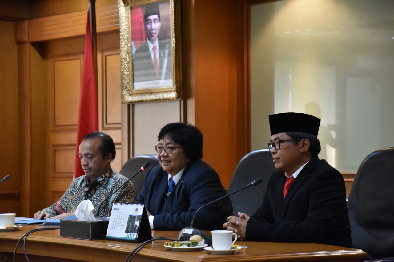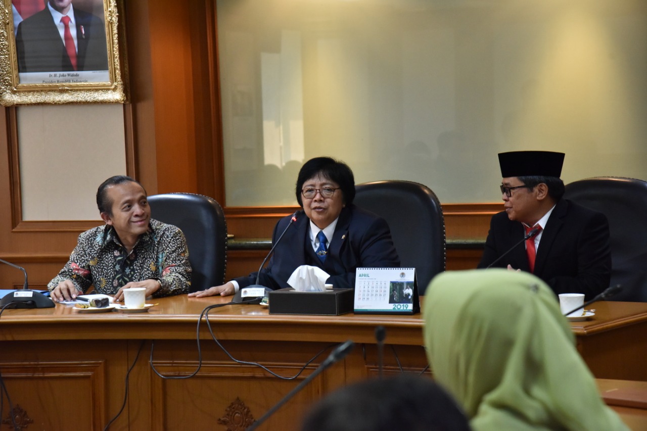 "Saya sudah menjelaskan hal-hal yang prinsip bagaimana fungsi kementerian ini untuk melindungi segenap bangsa dan tumpah darah Indonesia kepada Pak Wamen. Dari pertemuan sebelum Rapim tadi kami menyamakan kesepahaman tentang hal-hal prinsip terkait peran KLHK dan mandat menjaga kedaulatan negara pada konteks sumberdaya alam," demikkan ujar Menteri Siti.