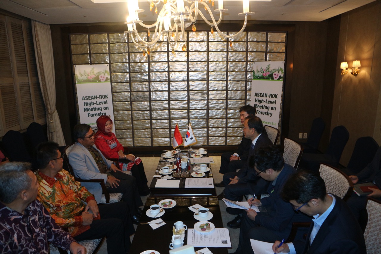 Menjelang Pertemuan tingkat Menteri Asian Forest Cooperation Organization (AFoCO) dan ASEAN-Korea, pada hari Selasa malam (29/10) Wakil Menteri LHK, Alue Dohong mengadakan pertemuan bilateral dengan Wakil Menteri Kehutanan Korea Selatan (Korea Forest Service), Park Chong Ho. Pada kesempatan tersebut dilakukan penandatanganan Pengaturan tentang Kerangka Kerjasama di Bidang Program Prioritas Kehutanan. Dokumen pengaturan dalam Bahasa Indonesia, Korea, dan Inggris tersebut secara sirkuler telah ditandatangani oleh Sekretaris Jenderal KLHK RI pada 28 Oktober 2019, dan pada Pertemuan Bilateral tersebut dilakukan penandatanganan oleh Wakil Menteri Kehutanan Republik Korea, kemudian dipertukarkan antara kedua Wakil Menteri.