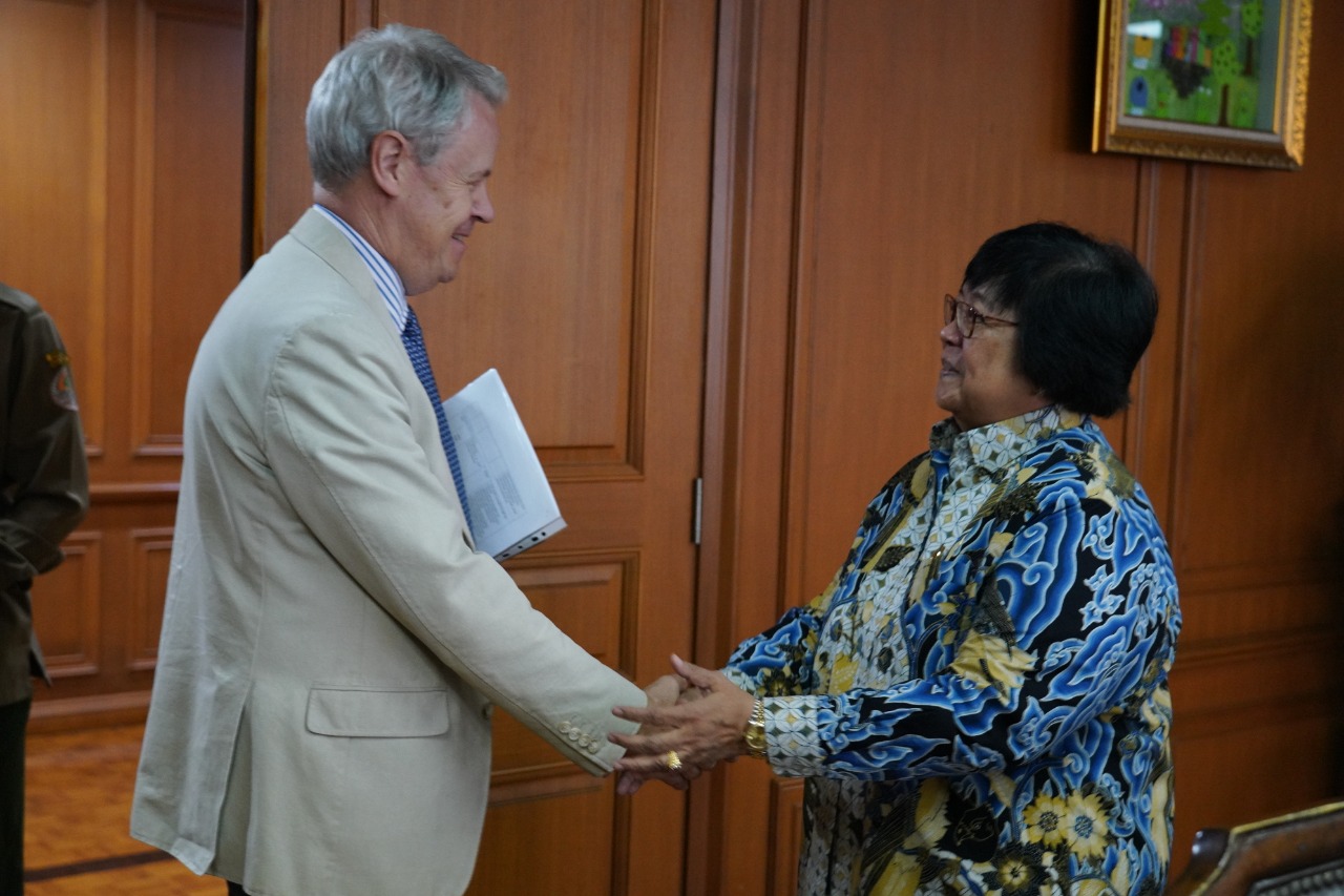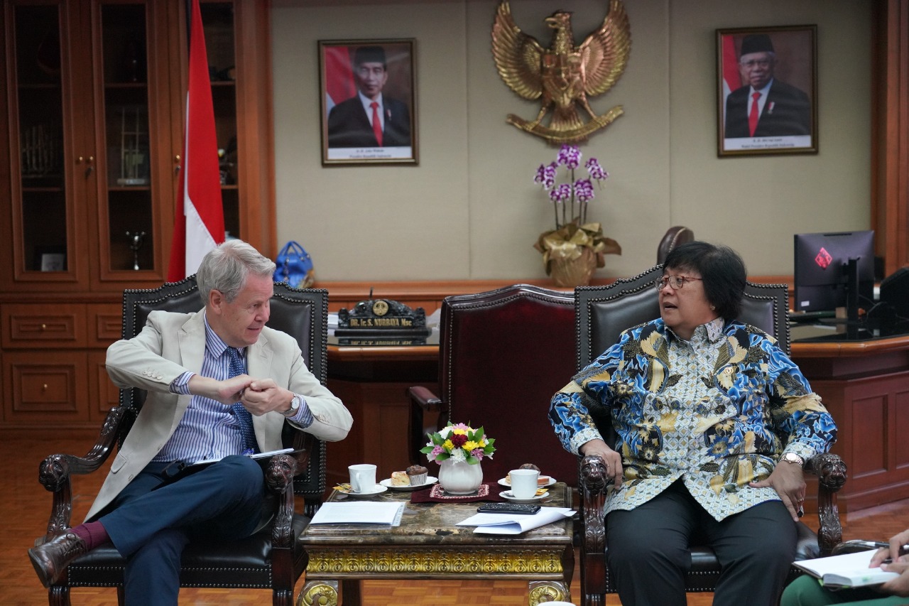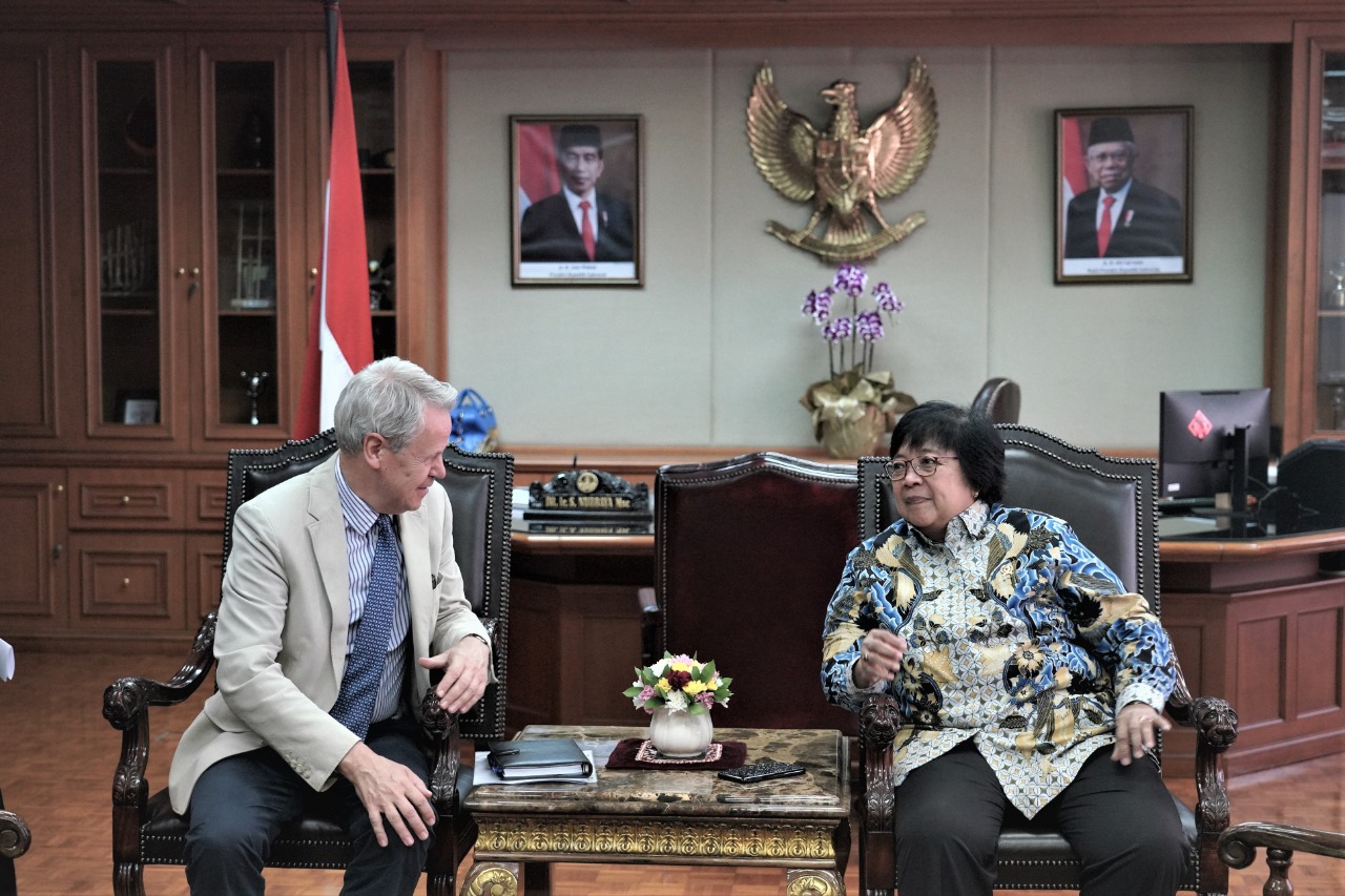 Menteri Lingkungan Hidup dan Kehutanan (LHK), Siti Nurbaya menerima langsung Food and Agriculture Organization (FAO) Representative, Stephen Rudgard di ruang kerjanya, Senin (4/10). Pertemuan ini membahas rencana tindak lanjut kerjasama yang telah dan sedang dilaksanakan, serta kerjasama baru.