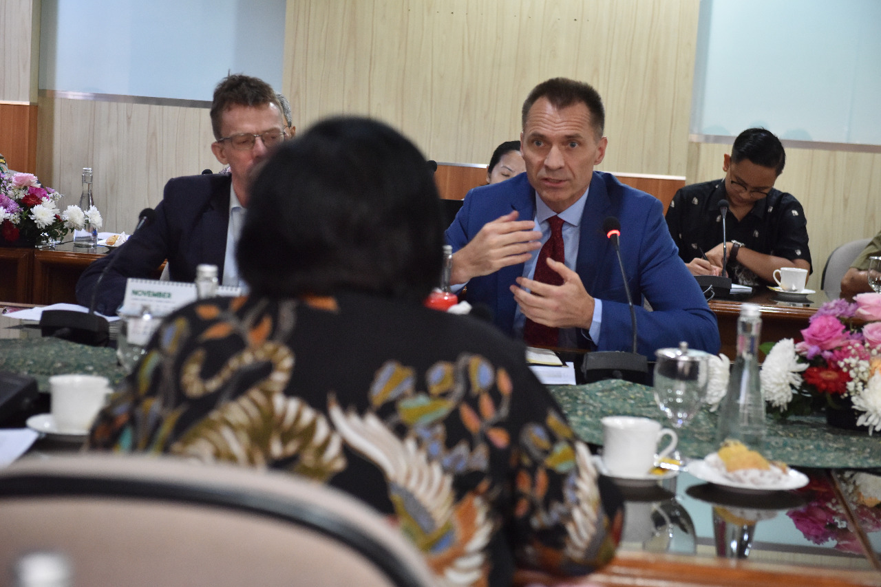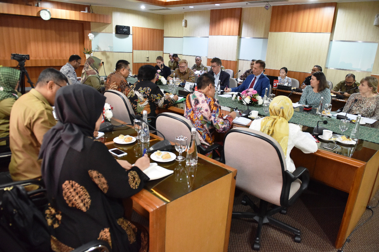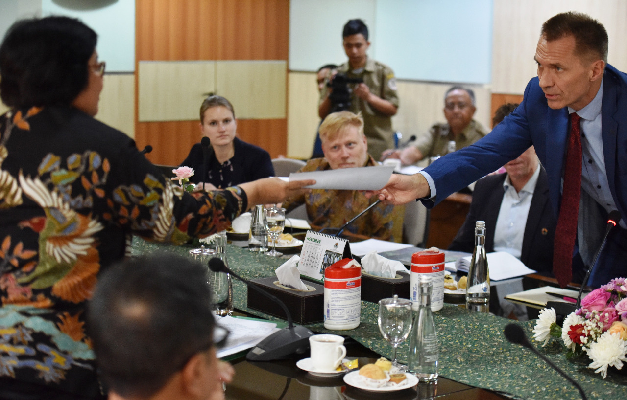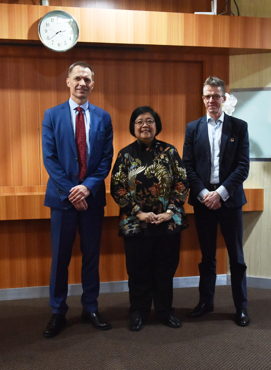 Menteri LHK Siti Nurbaya menerima kunjungan Utusan Khusus Menteri Iklim dan Lingkungan Hidup Norway, Per Federick Ilsaas Pharo yang didampingi Duta Besar Kerajaan Norway Vegard Kaale di Operasional Room Kementerian LHK (18/11) Jakarta.
