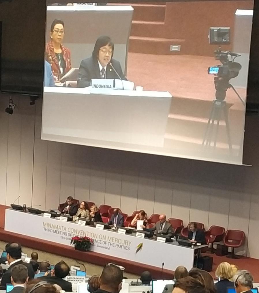 Dihadapan lebih dari 100 delegasi negara para pihak yang hadir, Menteri Siti Nurbaya memaparkan empat langkah utama yang dilakukan pemerintah Indonesia dalam upayanya menghapus penggunaan merkuri.