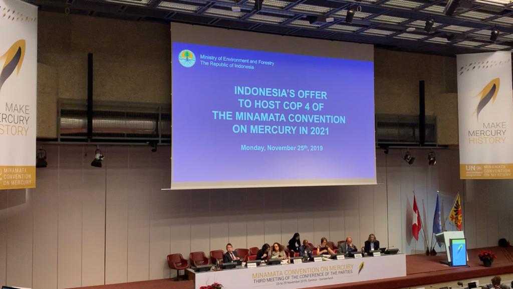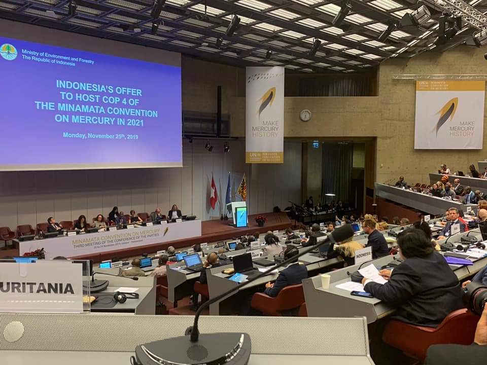 Melalui rapat pleno ke 2 COP-3 Konvensi Minamata di Jenewa, secara akmalasi Indonesia ditetapkan menjadi tuan rumah Conference of the Parties (COP) ke-4 Konvensi Minamata. Pertemuan Internasional ini rencananya akan digelar di Bali pada tahun 2021 mendatang.