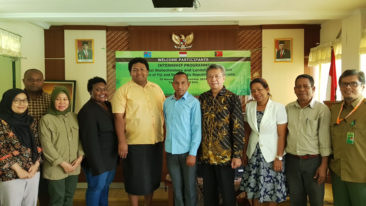 KLHK saat ini sedang menjalankan program pengembangan kapasitas kepada Pegawai Kehutanan Republik Fiji dan Republik Demokratik Timor Leste melalui Program magang di Yogyakarta dan Solo. Internship Programme on Forest Biotechnology and Landslide Mitigation dilaksanakan selama 8 hari dimulai 25 November 2019 s.d. 1 Desember 2019. Program ini diikuti oleh 3 peserta dari Fiji dan 3 peserta dari Timor Leste. Kegiatan diselenggarakan di Balai Besar Penelitian dan Pengembangan Bioteknologi dan Pemulian Tanaman Hutan (P2BPTH) di Yogyakarta dan Balai Penelitian dan Pengembangan Teknologi Pengendalian DAS di Solo. Program magang ini dilakukan di kelas, laboratorium, dan lapangan.