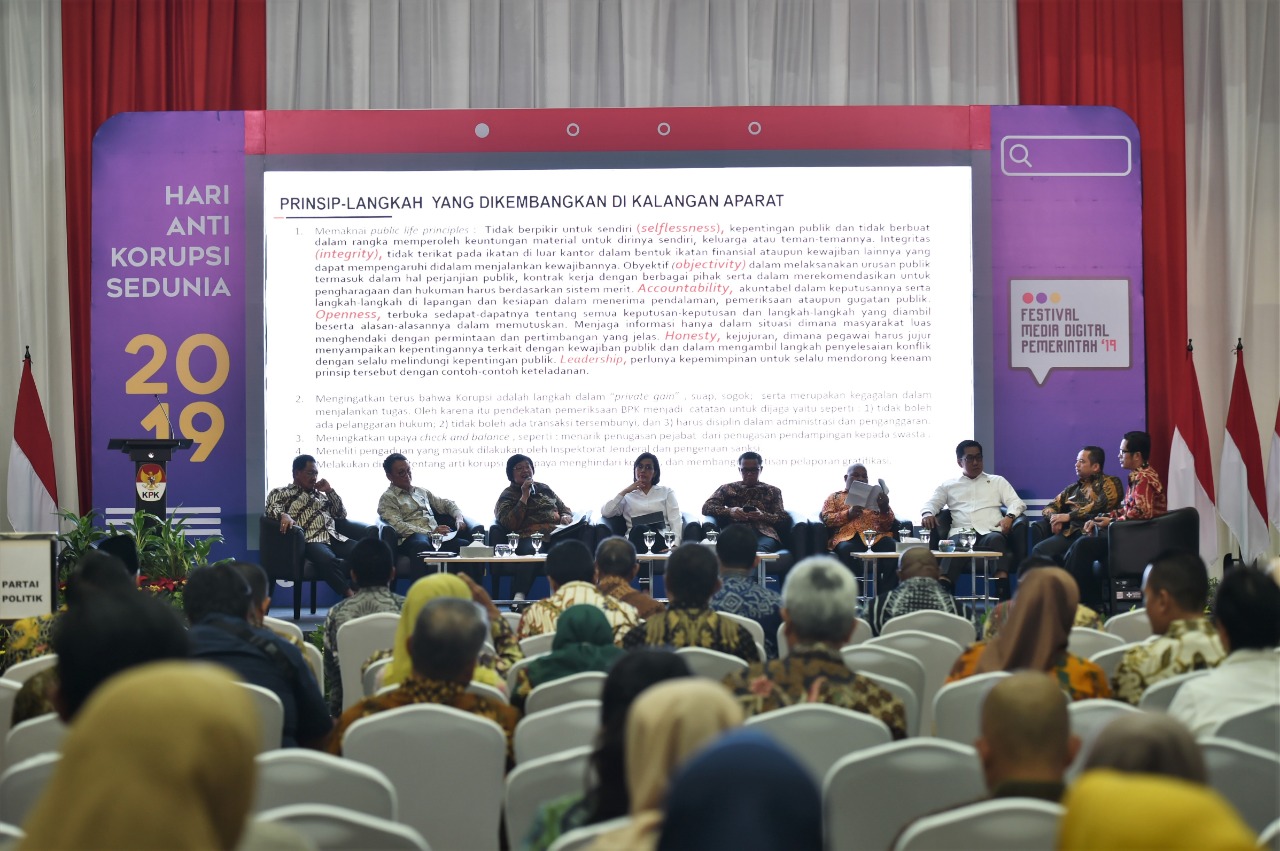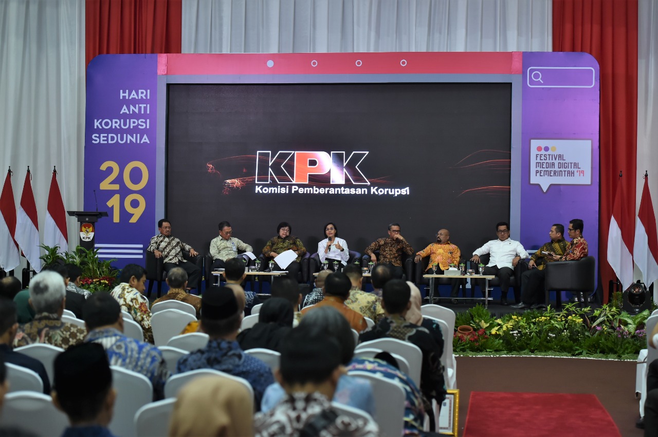 Menteri LHK, Siti Nurbaya hadir sebagai narasumber pada salah satu sesi dialog Peringatan Hari Anti Korupsi Sedunia (Hakordia) di Gedung Komisi Pemberantasan Korupsi (KPK), Jakarta (9/12/2019).