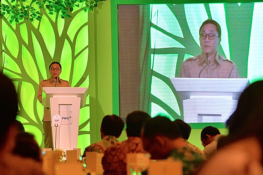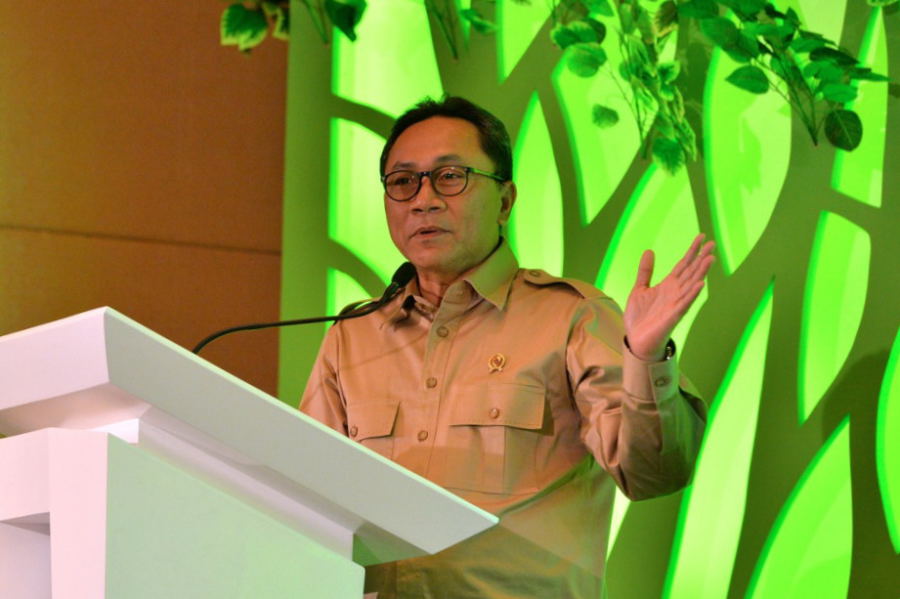 Foto 2-3 : Menteri Kehutanan Zulkifli Hasan memberikan sambutan saat peluncuran buku "Gallery of Peatland in Kampar Peninsula and Beyond: Beauties, Challenges and Opportunities" dan mengapresiasi terbitnya buku tersebut.