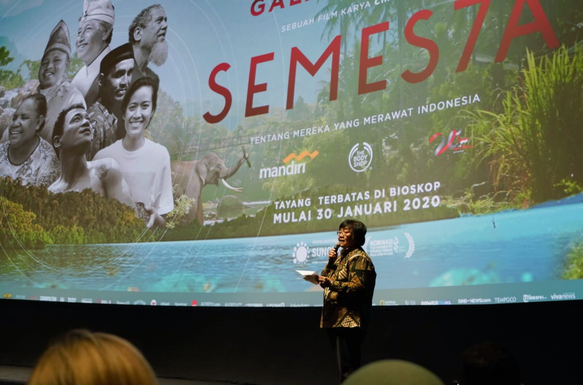 Jakarta, Kementerian Lingkungan Hidup dan Kehutanan (KLHK), Rabu, 22 Januari 2020. Menteri Lingkungan Hidup dan Kehutanan, Siti Nurbaya hadir pada Gala Premiere Film Semesta di XXI Epicentrum, Jakarta. Film ini menceritakan tentang 7 tokoh inspiratif di 7 provinsi di Indonesia (Bali, Kalimantan Barat, Nusa Tenggara Timur, Papua Barat, Aceh, DI Yogyakarta dan DKI Jakarta) yang melakukan tindakan melawan krisis iklim/perubahan iklim sesuai latar belakang budaya dan agama.