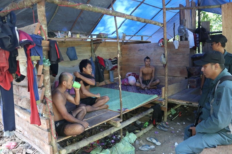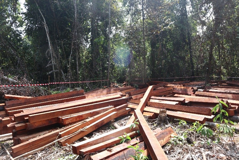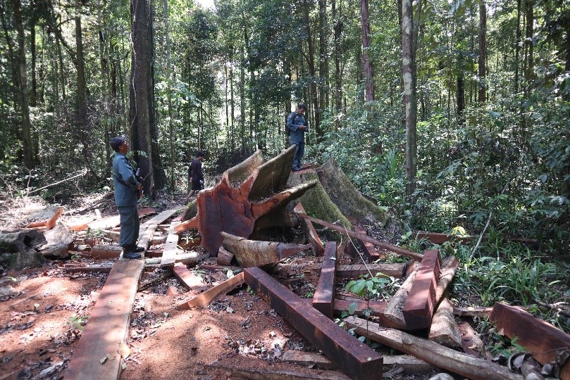 Tim Operasi Balai Penegakan Hukum (Gakkum) Maluku Papua KLHK, meringkus M (44) dan H (41), dua pembalak kayu illegal, dan menyita 1.915 batang kayu olahan jenis merbau (Intsia bijuga) di kawasan Hutan Neger Roho, Kecamatan Seram Utara, Kabupaten Maluku Tengah, 27 Januari 2020. Petugas juga mengamankan 3 chain saw, 3 sepeda dorong, 2 parang dan 1 kapak.