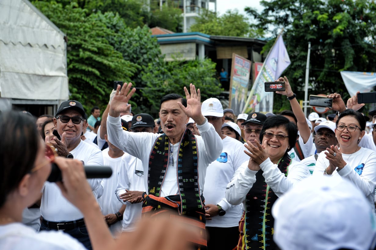 Mereka menyanyi penuh semangat di hadapan Menko Kemaritiman dan Investasi Luhut B. Pandjaitan, yang datang bersama Menteri Lingkungan Hidup dan Kehutanan (LHK) Siti Nurbaya Bakar, untuk memimpin aksi bersih pantai di Labuan Bajo, Manggarai Barat, NTT.