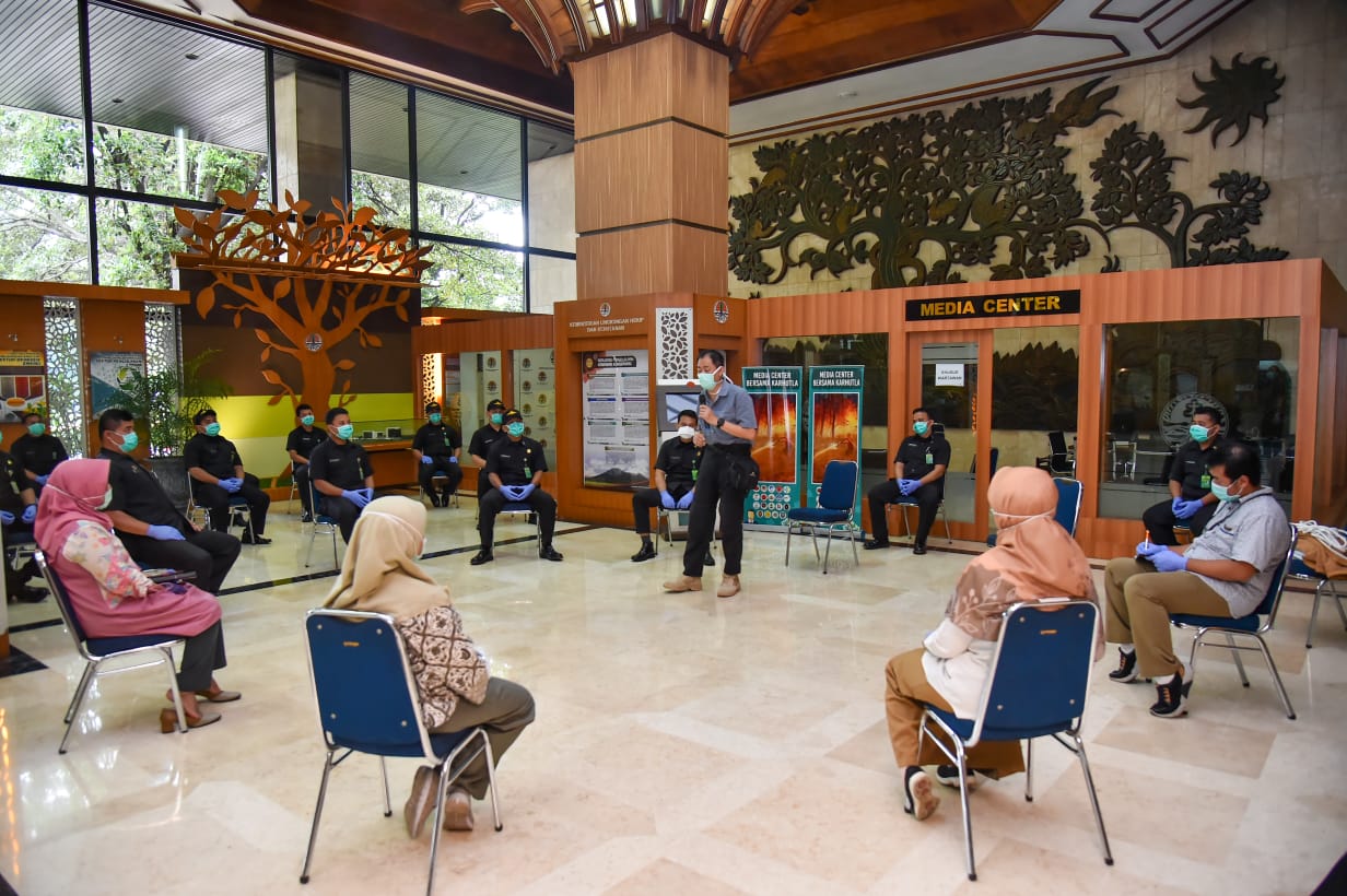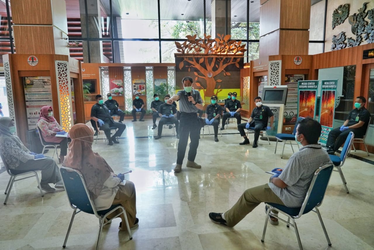 Menghadapi wabah COVID-19 yang terjadi di dunia termasuk di Indonesia, diperlukan sebuah upaya serius untuk menyiapkan tata kerja kesiapan tim Medis dan Tim Pengamanan Sipil. Mereka juga perlu dibekali prosedur penanganan karyawan yang terserang COVID-19 yang umumnya tiba-tiba kolaps dan tak sadarkan diri. Mengingat Jabodetabek adalah daerah dengan Zona Merah wabah COVId-19, dan sebaran tempat tinggal karyawan KLHK yang ada di Gedung Manggala Wanabakti ada di Jabodetabek, maka sangat perlu dilakukan edukasi bagaimana menghadapi kondisi darurat wabah COVID-19 ini.