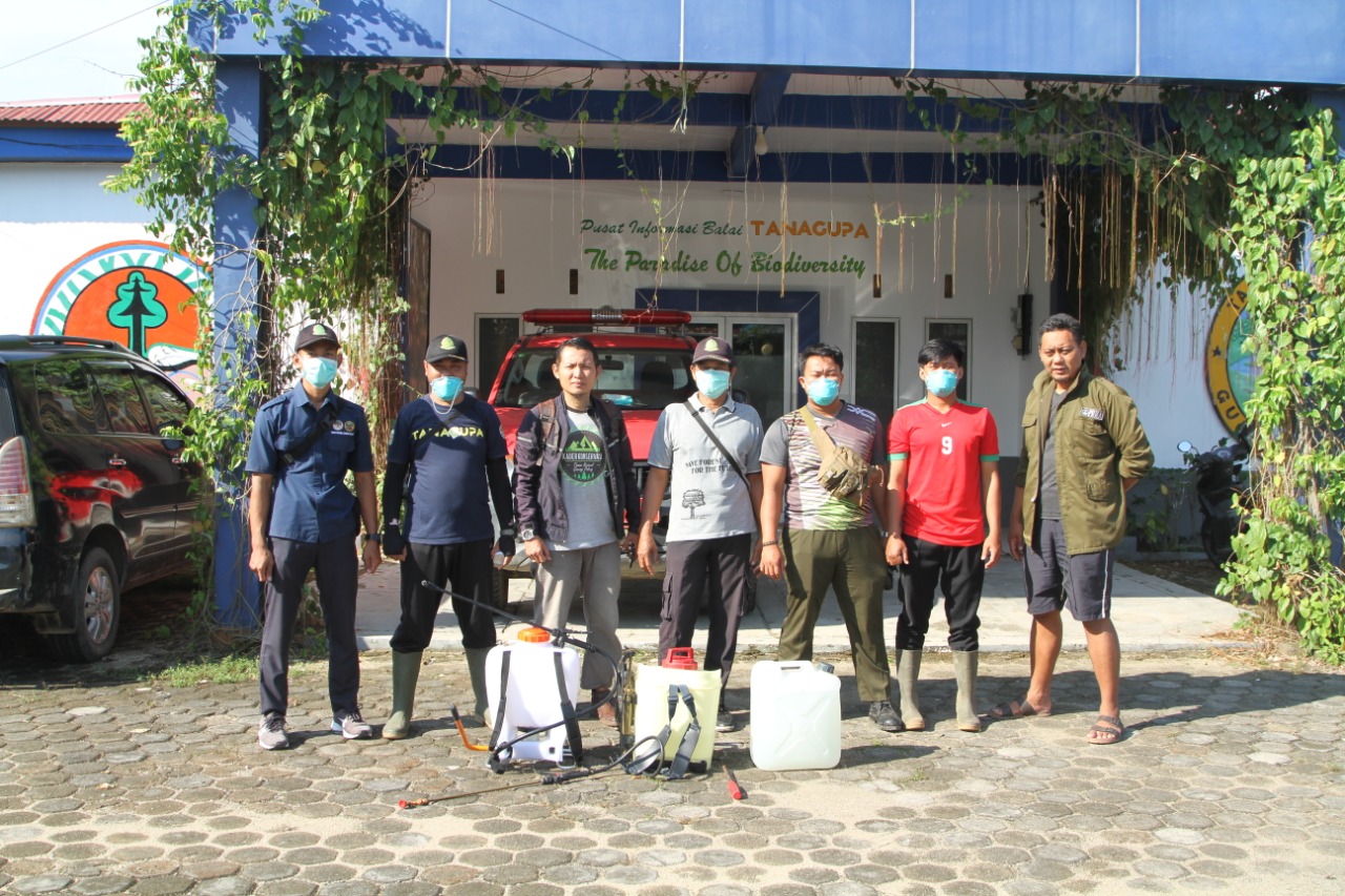 Dalam rangka mencegah penyebaran COVID-19, Balai TANAGUPA melaksanakan Penyemprotan Disinfektan di Desa-desa penyangga kawasan Taman Nasional Gunung Palung (TANAGUPA) di Kayong Utara (31/3). Kegiatan penyemprotan dilaksanakan di wilayah kerja Seksi Pengelolaan Taman Nasional (SPTN) I Sukadana yang meliputi Resort Sedahan, Resort Tanjung Gunung dan Resort Pangkal Tapang. Lokasi penyemprotan difokuskan di fasilitas kantor TANAGUPA, seperti: pos resort, pondok kerja, mess Polisi hutan, kemudian juga fasilitas umum, dan tempat yang dianggap perlu untuk dilakukan penyemprotan disinfektan.
