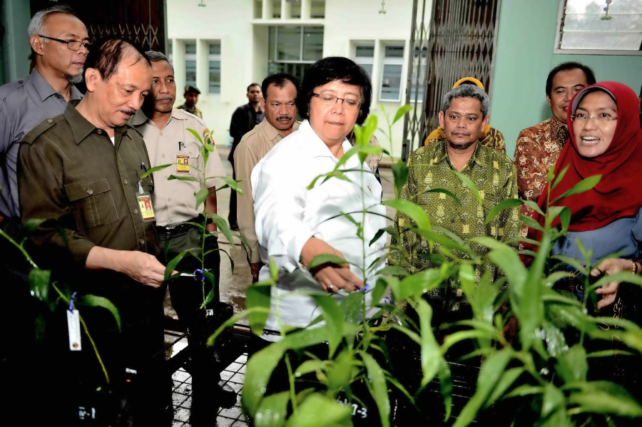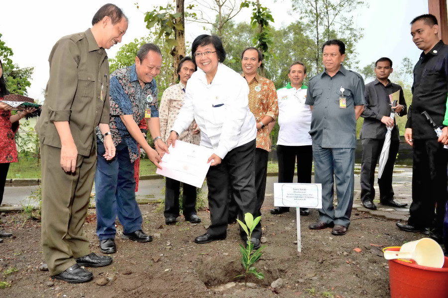 7. foto 10 Menteri Lingkungan Hidup dan Kehutanan, Siti Nurbaya dianugerahi sertifikat dari Balai Besar Penelitian Bioteknologi dan Pemuliaan Tanaman Hutan karena dianggap peduli terhadap usaha menanam yang berarti turut serta dalam usaha penyelamatan bumi.