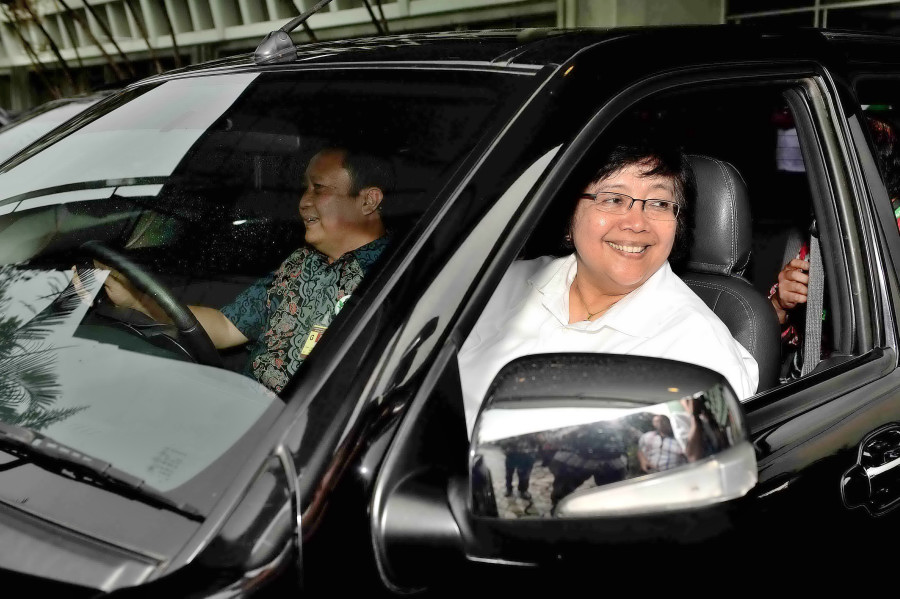 8. foto 11 dan 12 Menteri Lingkungan Hidup dan Kehutanan, Siti Nurbaya mengisi bahan bakar biodisel olahan dari Tanaman Nyamplung pada salah satu mobil tes yang kemudian beliau coba berkeliling dengan mobil tersebut.