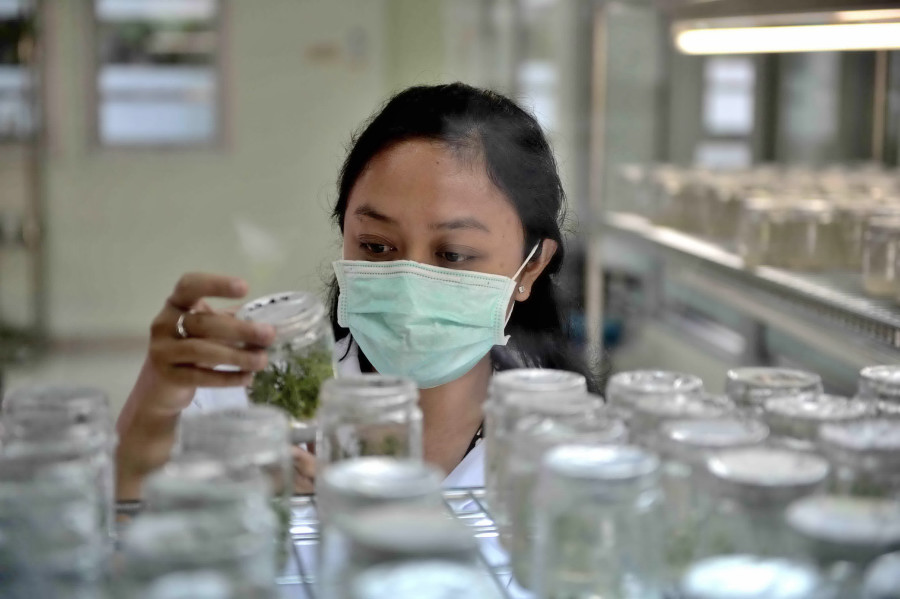 3. foto 3 dan 4 -> Menteri Lingkungan Hidup dan Kehutanan mendengar penjelasan dan melihat proses kultur jaringan yang dilakukan oleh staf-staf peneliti di Balai Penelitian Bioteknologi dan Pemuliaan Tanaman Hutan Yogyakarta