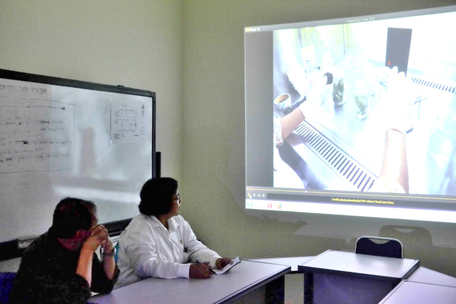 4. foto 5 Menteri Lingkungan Hidup dan Kehutanan, Siti Nurbaya melihat video proses kultur jaringan