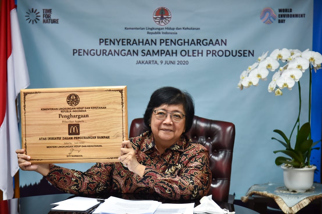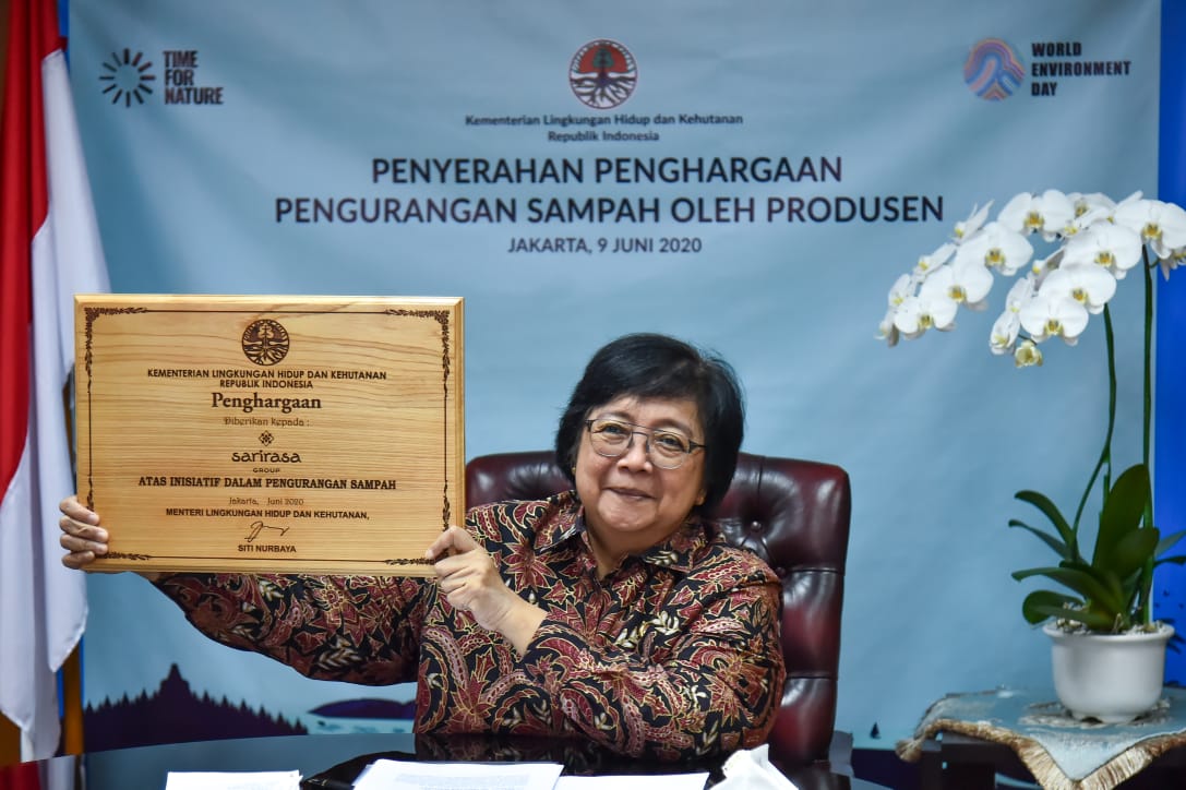 Kementerian Lingkungan Hidup dan Kehutanan (KLHK) menyerahkan penghargaan kepada produsen yang telah melakukan inisiatif pengurangan sampah dalam aktifitas usahanya. Penghargaan diserahkan secara simbolis oleh Menteri LHK Siti Nurbaya, Selasa (9/6/2020), melalui fasilitas video conference.