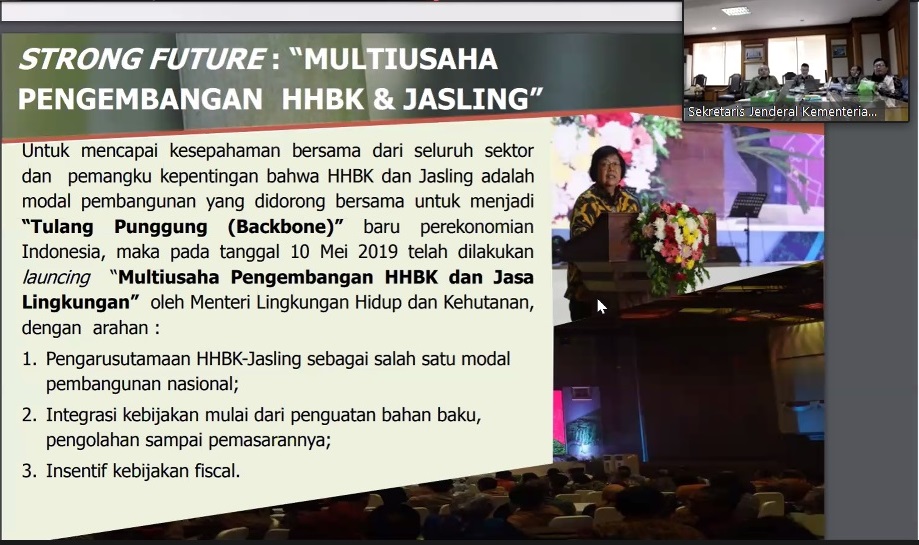 Bambang menyampaikan, pemanfaatan ruang kawasan hutan produksi di dalam areal izin usaha perlu dioptimalkan. Oleh karena itu, orientasinya tidak hanya pemanfaatan hasil hutan kayu saja, tetapi pemanfaatan potensi kawasan lainnya seperti hasil hutan bukan kayu dan jasa lingkungan.