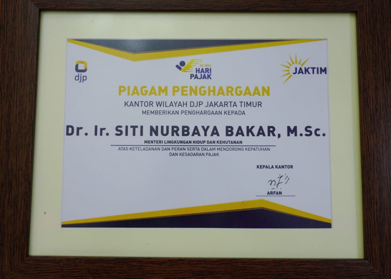 Dalam momentum peringatan Hari Pajak 14 Juli 2020, Menteri Lingkugan Hidup dan Kehutanan Siti Nurbaya mendapat penghargaan Atas Keteladanan dan Peran Serta dalam Mendorong Kepatuhan dan Kesadaran Pajak, dari Kantor Wilayah Direktorat Jenderal Pajak (Kanwil DJP) Jakarta Timur. Penghargaan tersebut diserahkan langsung oleh Kepala Kanwil DJP Jakarta Timur, Arfan, di rumah dinas Menteri LHK, Jakarta (15/7).