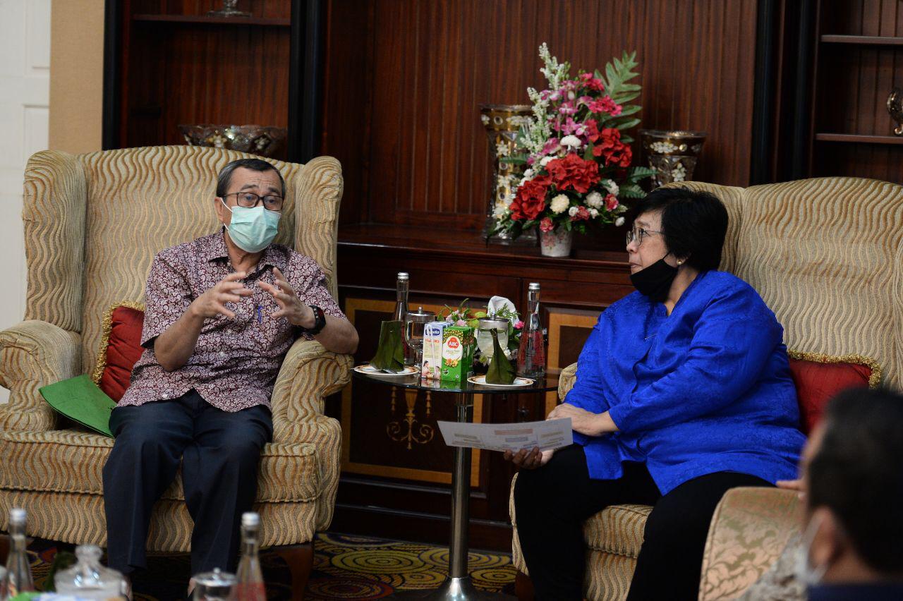 Menteri Lingkungan Hidup dan Kehutanan, Siti Nurbaya Bakar melakukan kunjungan kerja ke Provinsi Riau, Sabtu (18/7/2020). Secara khusus ia melakukan pertemuan dengan Gubernur Riau, Drs. Syamsuar dan Kapolda Riau, Irjen Pol Agung Setia Imam Efendi, dalam rangka pemantapan upaya pencegahan kebakaran hutan dan lahan (Karhutla) secara permanen.