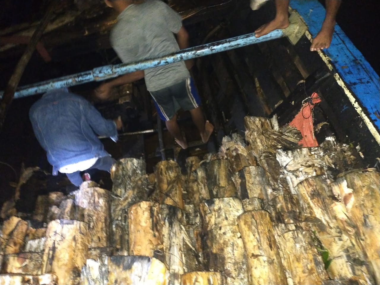 Tim Operasi Pengamanan Hutan Gakkum KLHK Wilayah Sumatera bersama Polda Sumatera Selatan, BKSDA Sumsel dan Dinas Kehutanan Provinsi Sumsel, menangkap 3 orang saat mengangkut kayu tebangan ilegal di dalam Suaka Margasatwa (SM) Padang Sugihan, Sumatera Selatan (21/7). Pada penangkapan yang dilakukan sekitar pukul 3 dini hari, tim juga menyita satu perahu motor kayu dengan muatan kayu gelam tebangan ilegal.