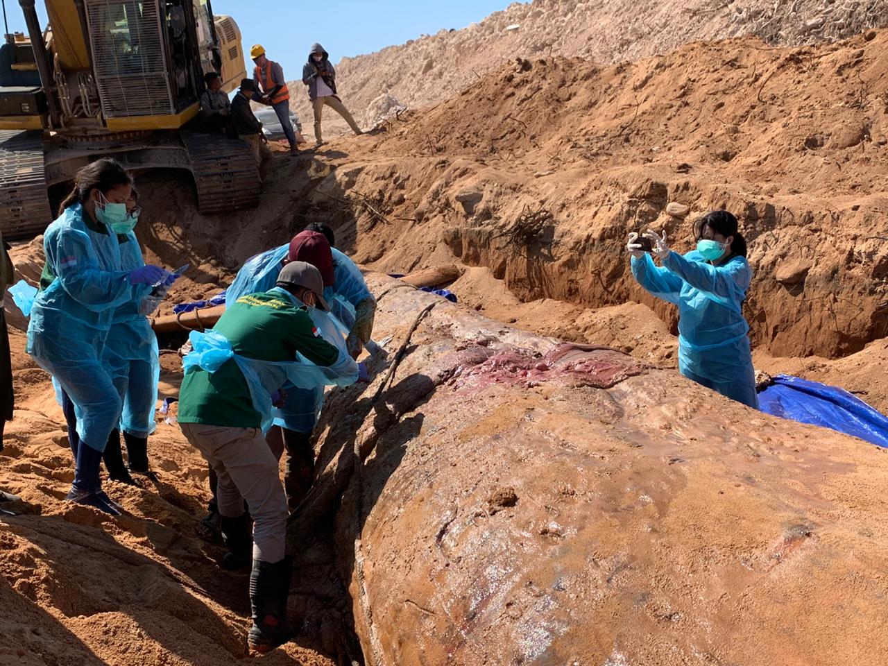 Hasil koordinasi dan temuan di lapangan menyatakan jenis paus tersebut adalah Paus Biru (Balaenoptera musculus), diperkirakan berusia 70