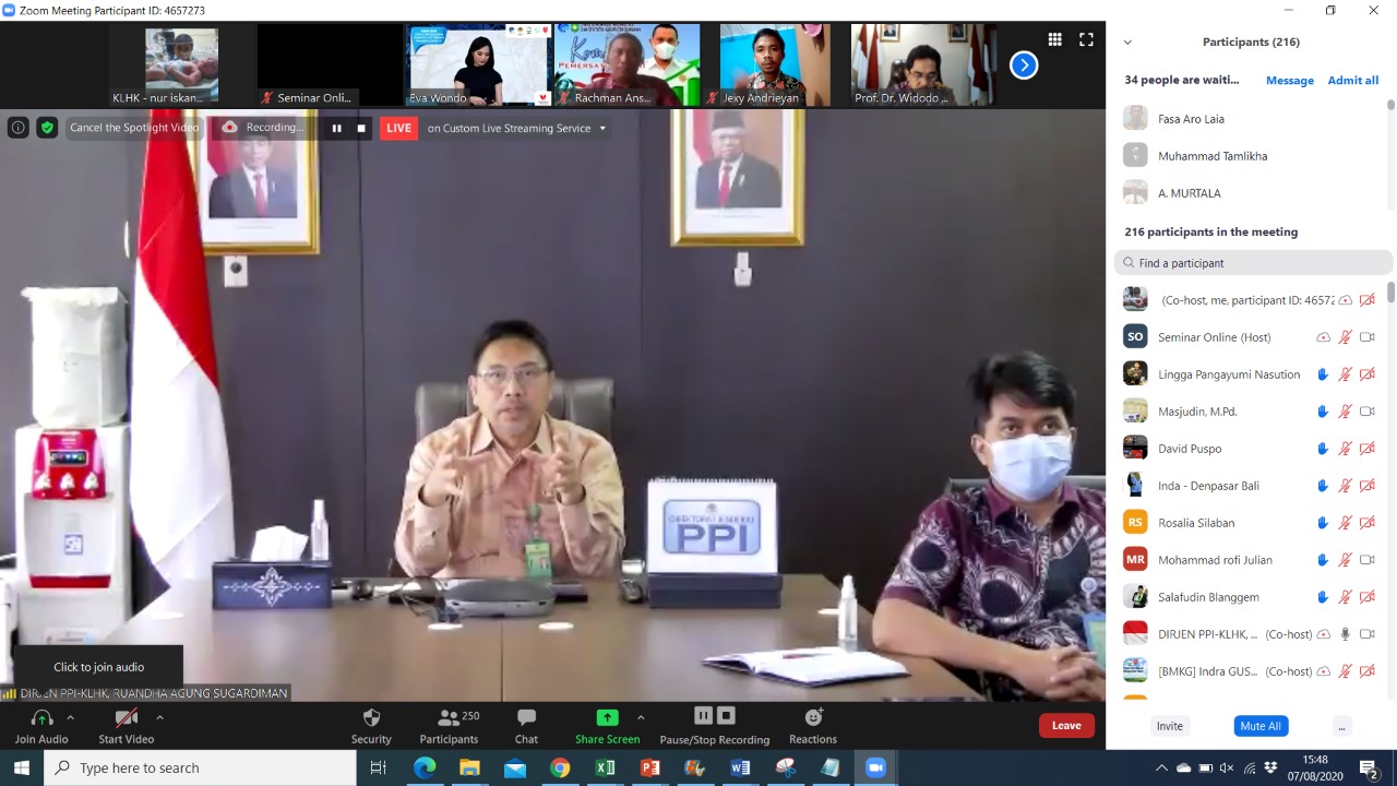 Direktur Jenderal Pengendalian Perubahan Iklim Kementerian Lingkungan Hidup dan Kehutanan (Dirjen PPI KLHK), mengungkapkan kegiatan TMC merupakan kerja bersama melibatkan BNPB, BPPT, TNI AU, dan para mitra.