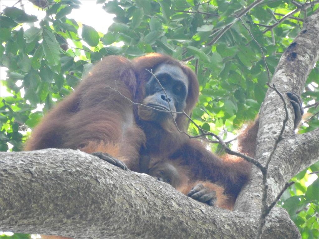 Satu induk orangutan sumatera (Pongo abelii) di Pusat Reintroduksi Orangutan, di Cagar Alam Hutan Pinus Jantho, Aceh Besar, terpantau memiliki seekor anak pada saat Tim monitoring di pusat reintroduksi tersebut melakukan monitoring jalur pengamatan orangutan sumatera pada rabu tanggal 26 Agustus 2020.