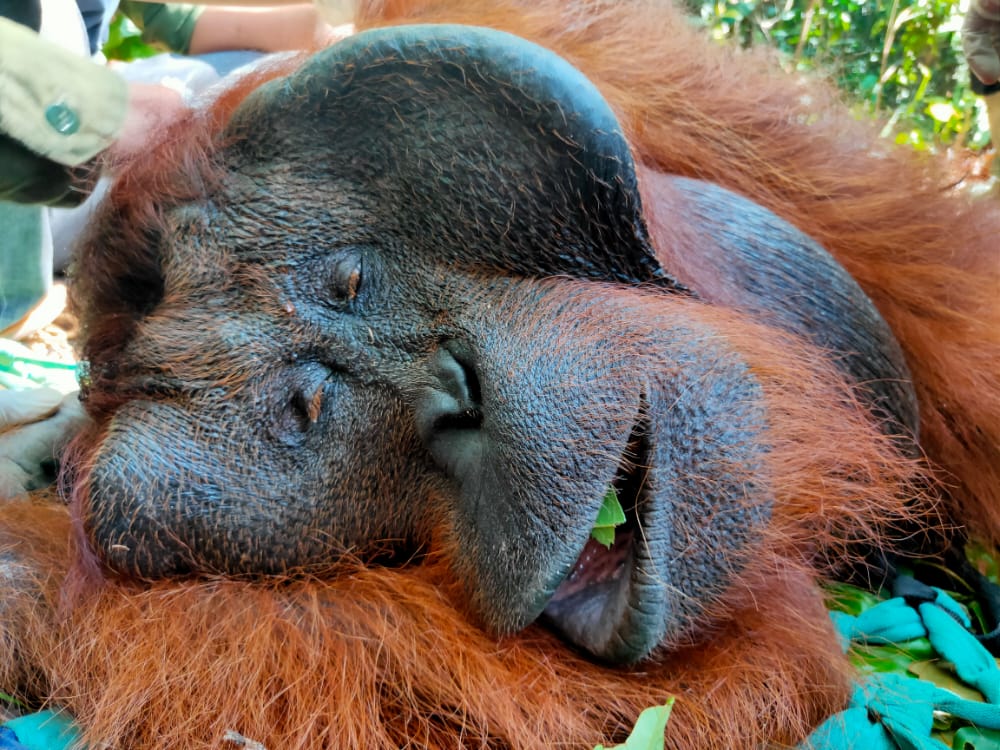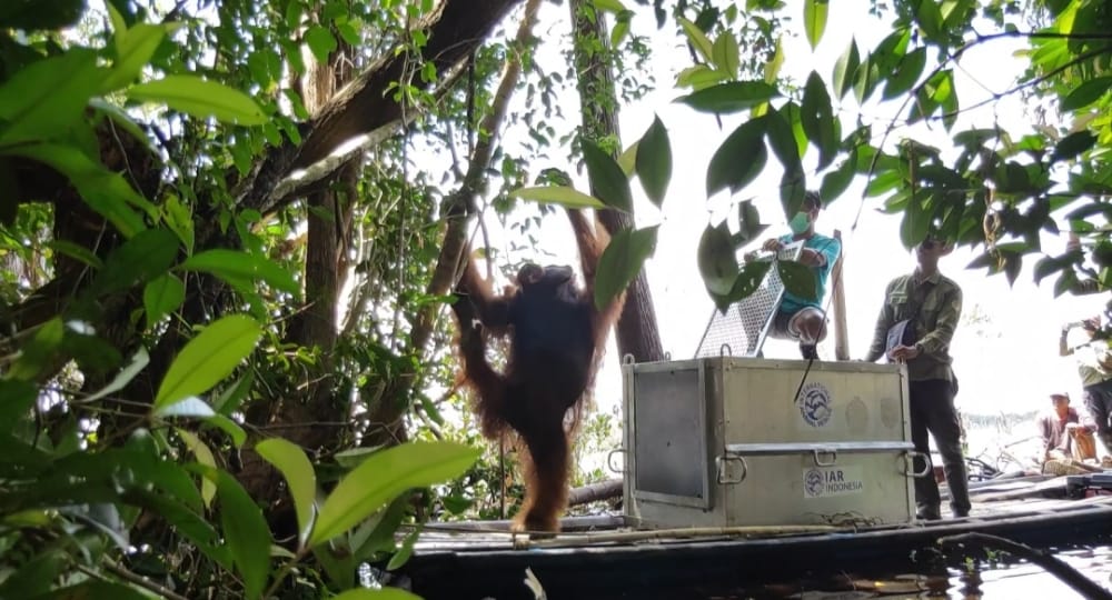 Balai Konservasi Sumber Daya Alam Kalimantan Barat KLHK berhasil menyelamatkan Orangutan liar yang hidup di hutan pinggir Desa Tempurukan, Kecamatan Muara Pawan, Kab. Ketapang (30/9). Hutan yang berada di Desa Tempurukan ini merupakan areal berhutan dengan status Areal Penggunaan Lain yang tidak begitu luas sebagai habitat satwa ini.