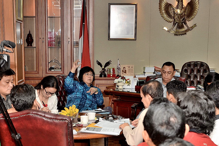 Pusat Humas Kemenhut, Jakarta : Menteri Lingkungan Hidup Siti Nurbaya mendampingi Sekjen Kementerian Kehutanan, Hadi Daryanto memberikan Press Conference terkait perbedaan data ekspor industri kehutanan yang tercantum dalam silk.dephut.go.id dengan data Kemendag pada INSW serta Telaahan Gap pemenuhan bahan baku industri pulp & paper . Selasa (24/2) di Ruang Kerja Menteri LHK Gedung Kehutanan Manggala Wanabakti Jakarta.