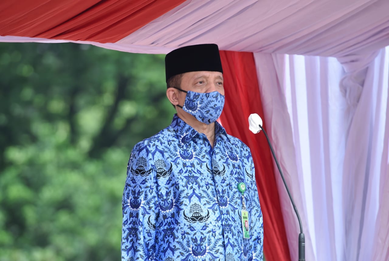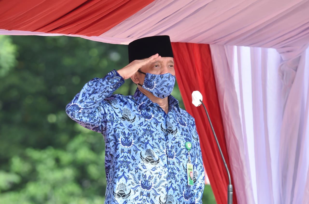 Sekretaris Jenderal Kementerian Lingkungan Hidup dan Kehutanan (KLHK), Bambang Hendroyono memimpin langsung Upacara Bendera untuk Memperingati Hari Pahlawan tahun 2020 di Plaza Ir. Soedjono Soerjo Gedung Manggala Wanabakti, Jakarta, Selasa (10/11/2020). Upacara ini diikuti oleh seluruh Pejabat Pimpinan Tinggi Madya atau setingkat Eselon I, dan Pejabat Pimpinan Tinggi Pratama atau Eselon II lingkup KLHK.